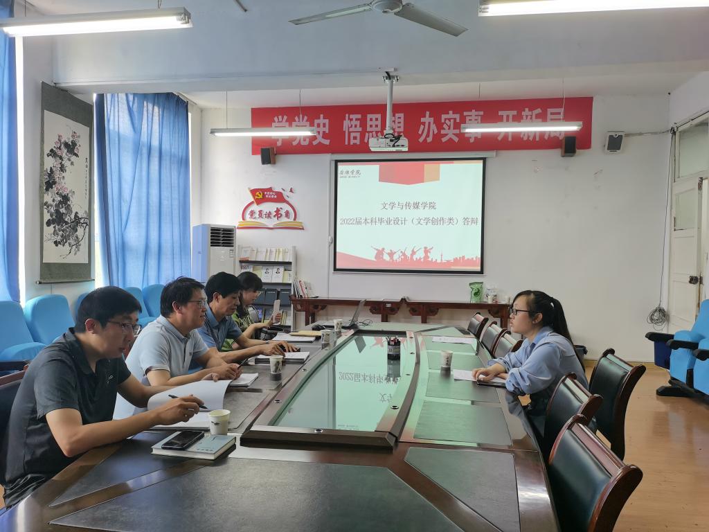 6月2日下午15时,SUNBET申博体育2022届本科毕业设计(文学创作类)答辩会在江南校区2307会议室顺利举行。本次答辩会由SUNBET申博体育副经理朱云主持并担任答辩组组长,创意写作任课教师曹刚、鲁雨溦担任答辩评委,汉语言文学专业2022届员工李娇参加答辩。作家李春平教授作为指导教师出席答辩会。
