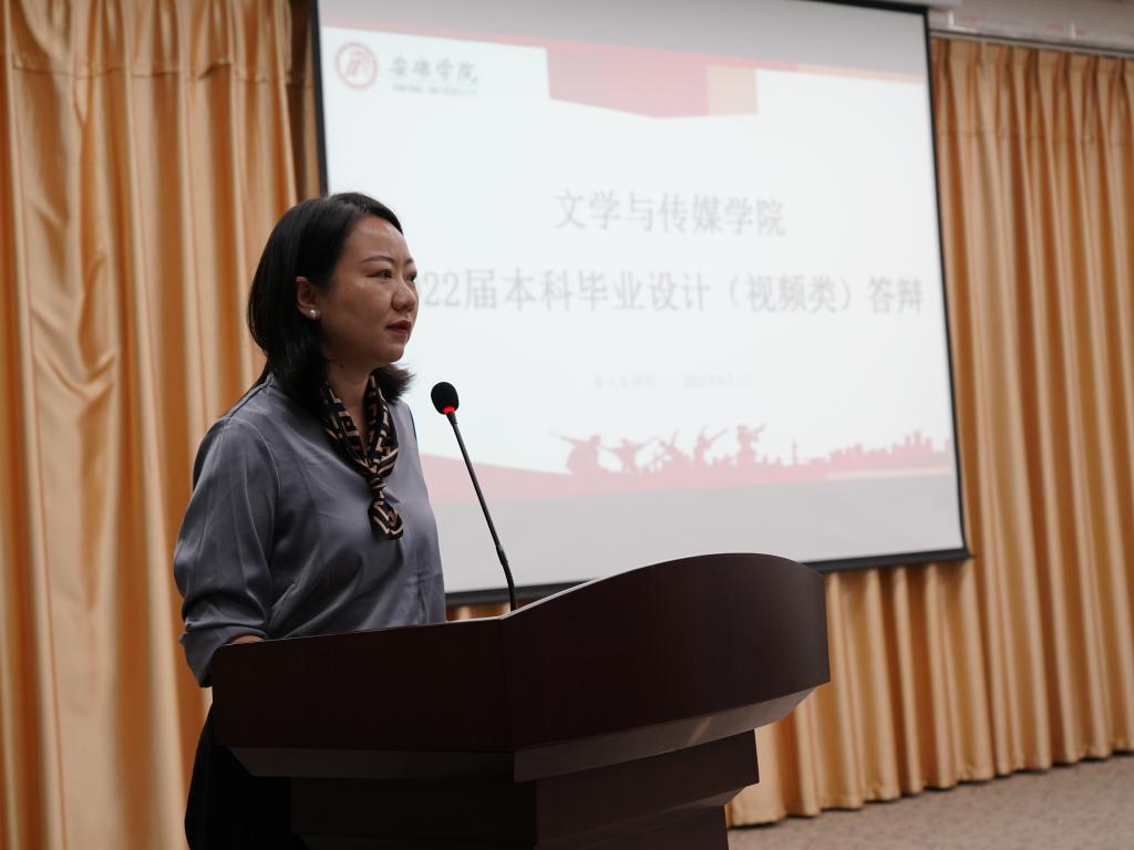 最后,经答辩组讨论,一致同意8位同学通过毕业设计答辩,答辩组组长谭诗民宣读答辩结果。白堇对本次答辩进行总结。她对4份视频作品的完成度表示赞赏,并对8位答辩同学的视频制作能力表示肯定。她指出,网络与新媒体专业是年轻人施展才华、为媒体行业发展注入新鲜活力的输出口,希望本专业员工不断提高内容生产能力,不断挖掘素材的传播价值,注重策划先行,锻炼吃苦耐劳的意志力和团队协作能力,在未来创作出更具社会价值的视频作品。