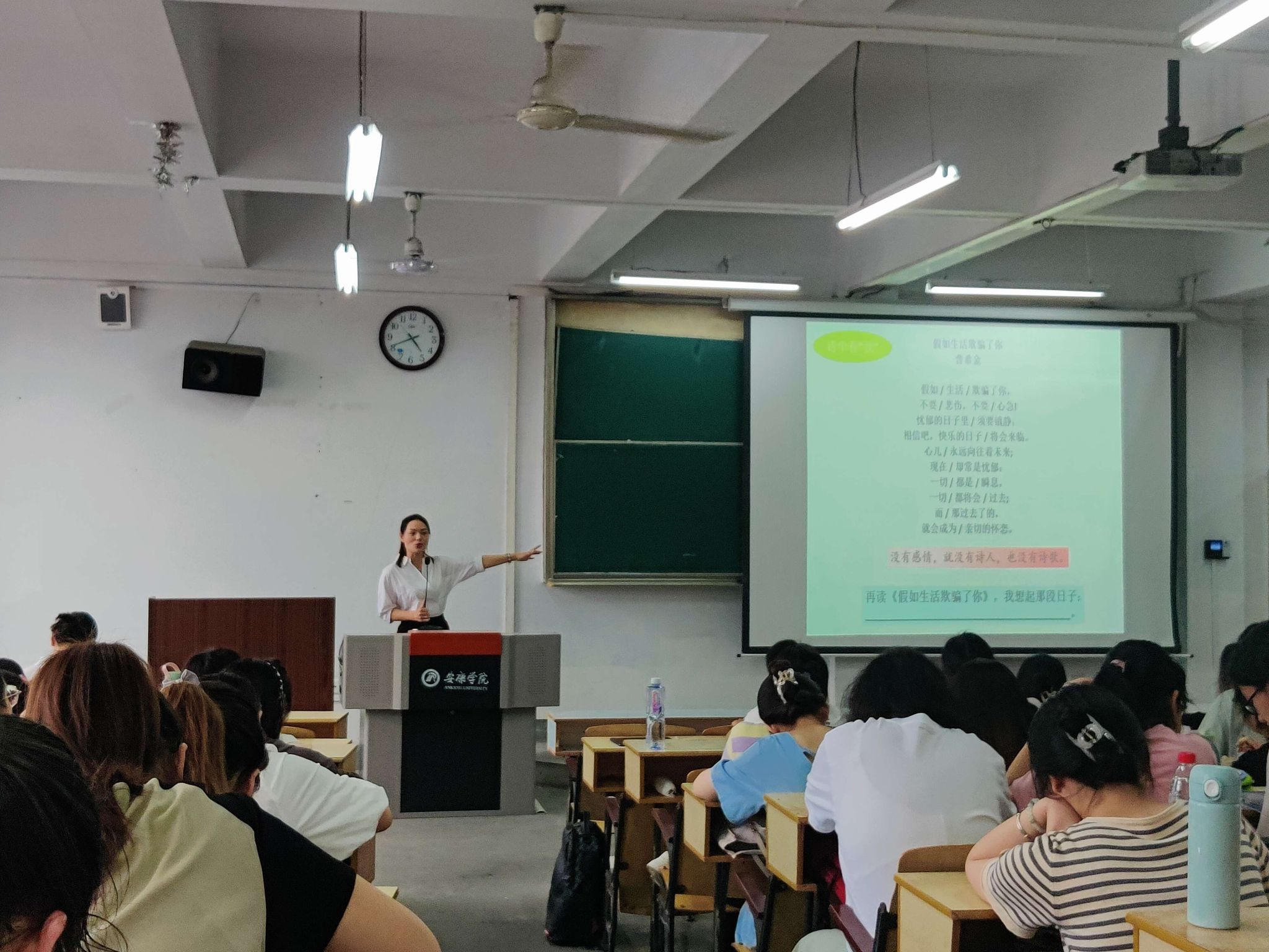 导航痕迹 首页 > 教学科研 > 教学活动 > 正文 专业建设 教学团队 教研教改 教学活动 科学研究 国际交流 名师引领促提升,拓宽视野提能力——邱俊老师为汉语言文学2020级员工作课例分析讲解 来源:SUNBET申博体育 发布日期:2023年06月18日 阅读次数: 为进一步提高汉语言文学专业员工对中学语文教学的认识和拓宽教学思路,SUNBET申博体育于6月16号下午邀请陕西省教学名师、安康市教研室专家邱俊老师为汉语言文学2020级员工进行专题讲座。 邱俊以《假如生活欺骗了你》和《爱莲说》两篇文章为例,结合自身教学设计理念和经验,通过定位文章的中心引导员工思考诗歌教学和文言文教学思路、方法,以提高员工对诗歌和文言文教学的理解,开拓教学思路。 本次课例讲解,使员工在研究诗歌和文言文教学中掌握了可操作的教学方法,对提高员工的专业素质和教学能力具有重要作用。 撰稿/刘寒龙(员工) 摄影/王振羽(员工) 审核/李婷 发布/崔瑜