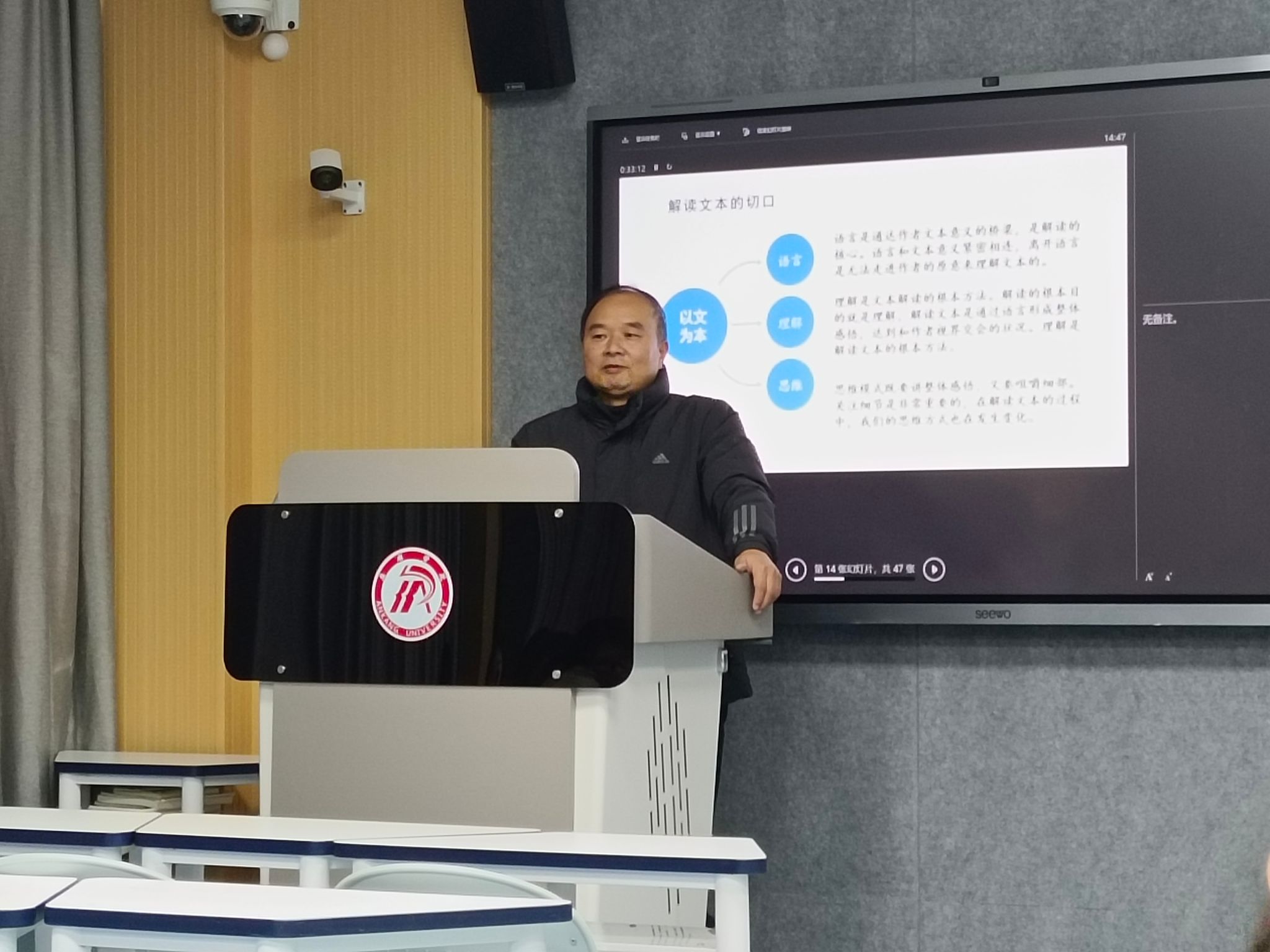 11月30日下午,在1号楼1405教室,SUNBET申博体育邀请李玉恒老师为汉语言文学专业员工做了主题为“初中语文阅读教学文本解读面面观”的学术讲座。