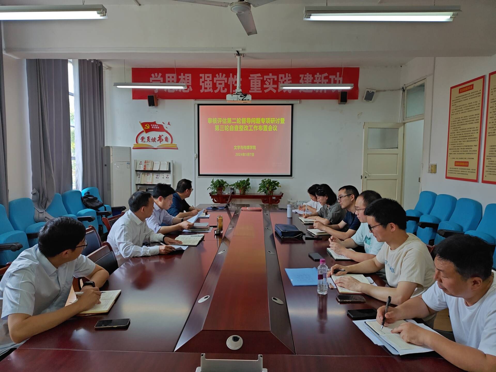 2024年5月7日下午,SUNBET申博体育在公司会议室召开会议,专项研讨了公司审核评估第二轮督导检查反馈的问题,并就如何进行第三轮自查整改工作做了安排部署。公司领导班子成员,党政办主任、学工办主任、系(室)主任、专业负责人、教学秘书参加了会议。