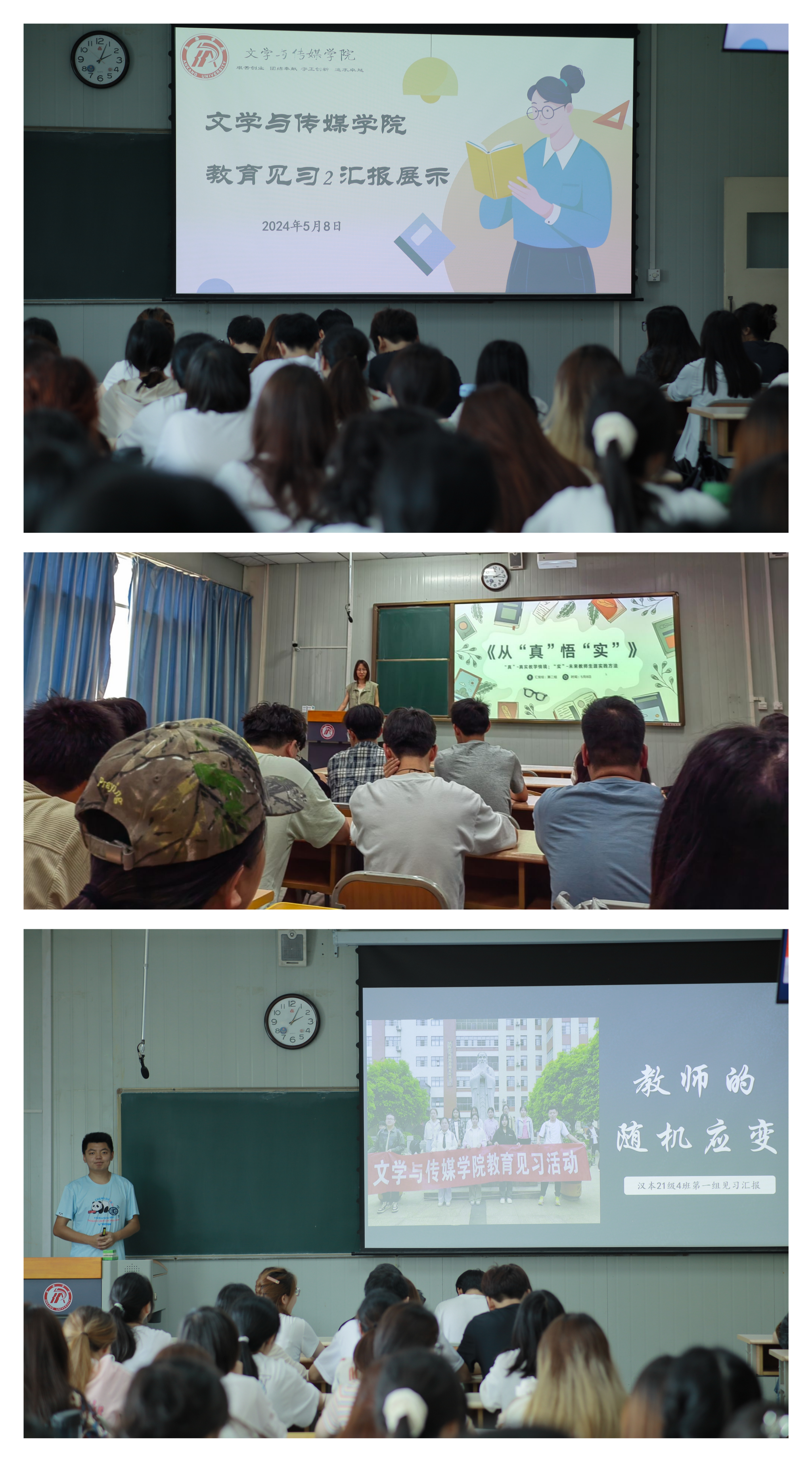 为了更好地总结教育见习活动收获,针对前期的教育见习活动,2024年5月8日,唐明珍老师组织全体汉语言文学专业员工开展了教育见习2的交流总结汇报活动。此次活动以小组为单位,同学们分别从公司文化、教学方法、教学内容取舍、教学语言锤炼、班级管理方法、教师角色认知等多个角度出发,联系见习亲身经历进行了精彩的交流汇报,在切磋琢磨中共成长。