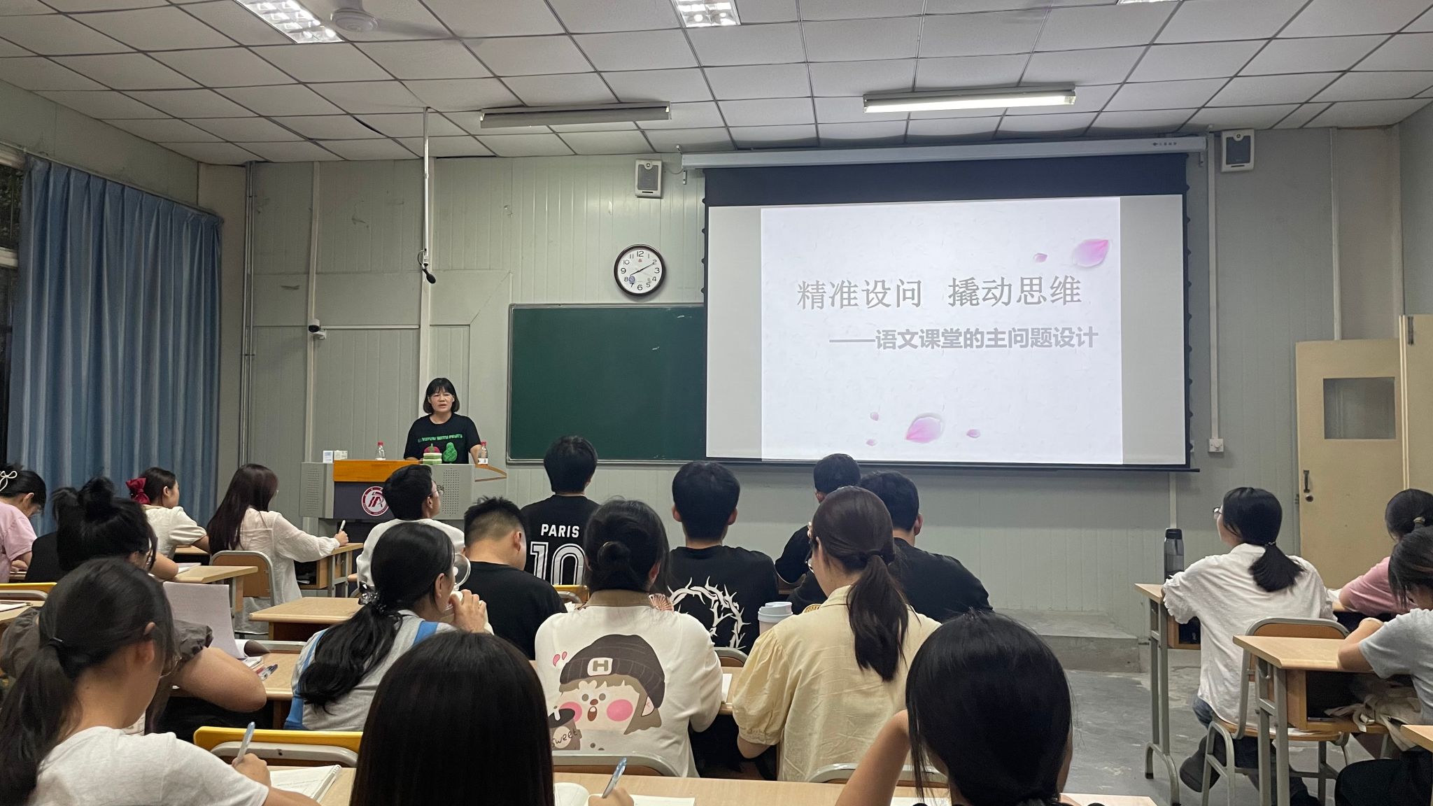 吉元丽老师深耕教学一线,有着20多年的教学经验,她结合自己一线的教学经验,“敲响课堂第一锤——语文课堂的导入设计”“精巧设问,撬动思维——语文课堂的主问题设计”为主题,围绕导入语设计的类型、导入语设计切入方法、主问题设计的切入点等内容展开讲解。依据自身教学经验,结合名师优秀教学案例,通过展示《往事依依》《我的叔叔于勒》《爱莲说》《拿来主义》等经典导入、主问题设计案例,以《马说》为课堂实际练习,指出导入语设计要做到原则求“趣”、形式求“新”、内容求“巧”、方式求“活”、语言求“精”、钻研上求“深”;主问题设计上要发挥出主问题在教学中的“牵引力、支撑力、凝聚力、调节力”的作用。吉老师用生动丰富的课例和对教学的深入思考,让同学们收获满满,受益匪浅。