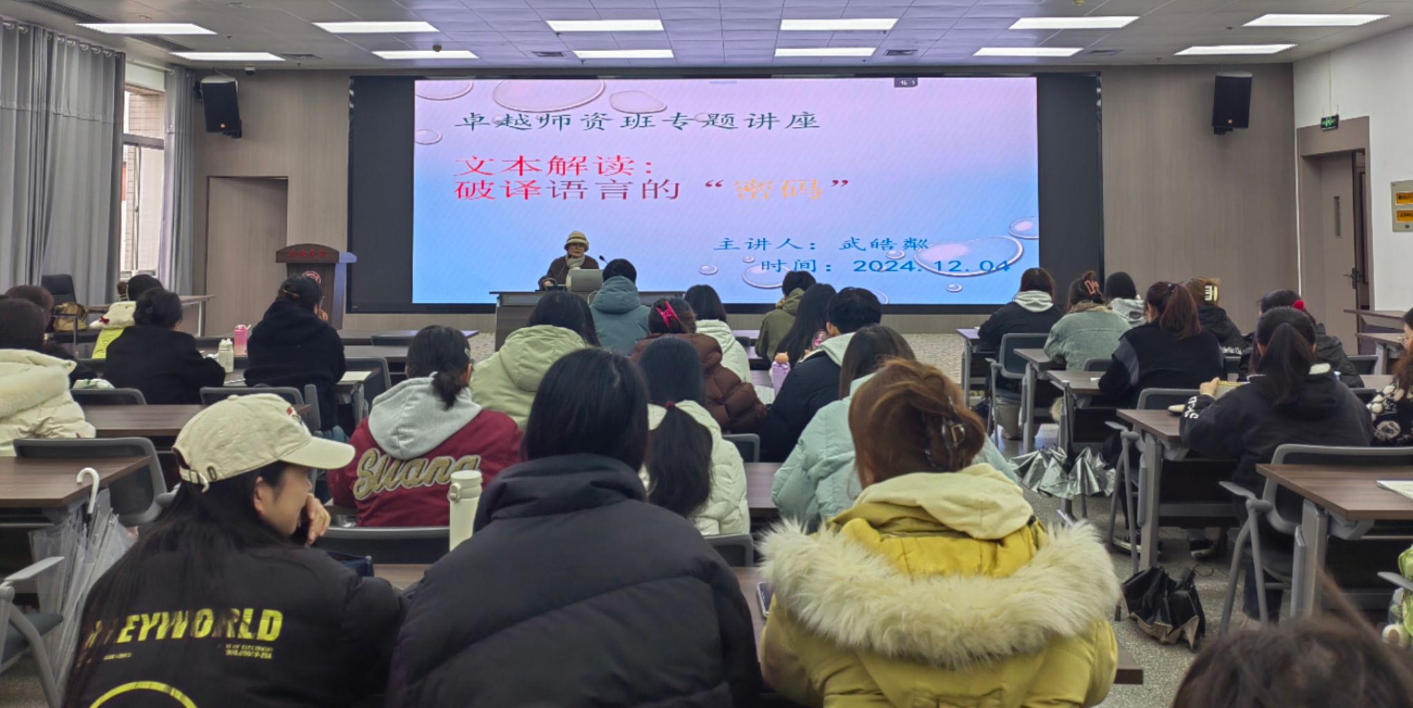 为了提升员工的文本解读能力和语文教育素养12月4日下午SUNBET申博体育在图书馆六楼报告厅成功举办了以“文本解读:破译语言的密码为主题的语文教育讲座。本次讲座特邀安康中学高级教师武皓粼老师主讲,班主任唐明珍和“卓越团队班”全体员工聆听了本场讲座。
