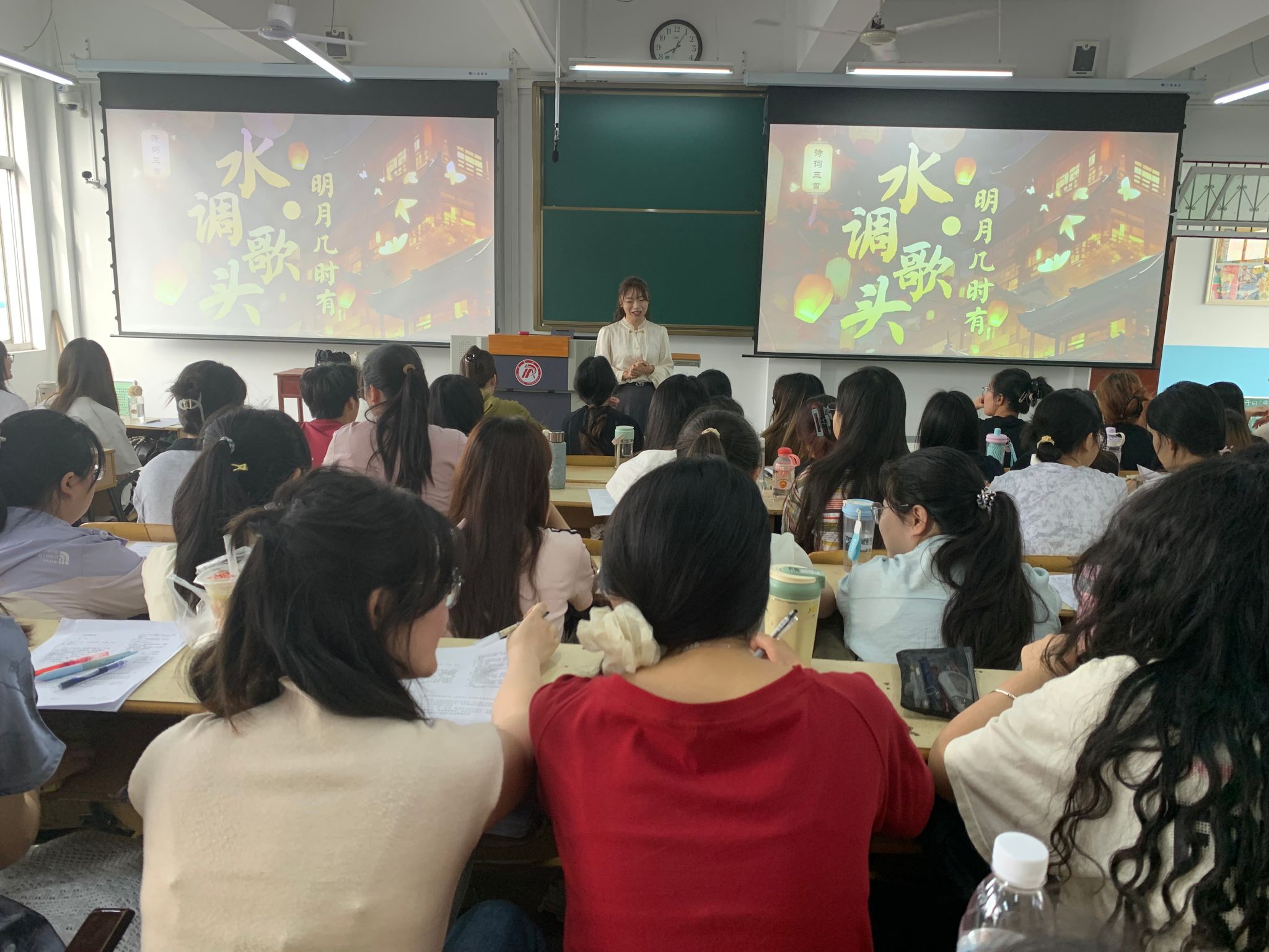 张丹老师以“读月——赏月——悟月”为线索为大家展示了《水调歌头·明月几时有》这首古诗词的情境化教学该如何开展。