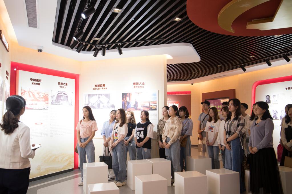 上午8:30,员工党员在公司2号教学楼集中,员工第二党支部书记薛涛带领大家参观了感受到党史教育展板。