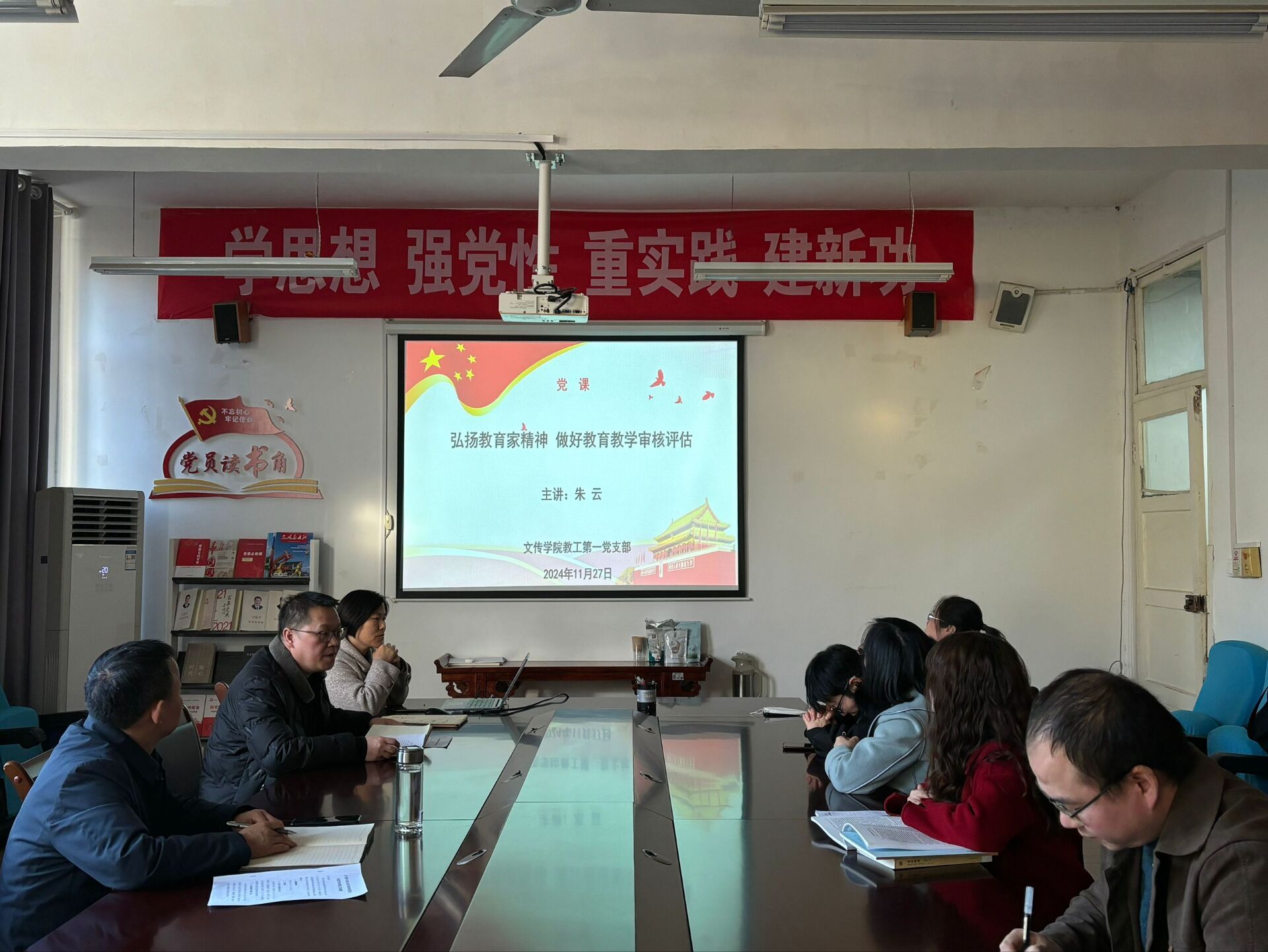 为深入学习贯彻习近平总书记关于教育的重要论述和全国教育大会精神,全面落实立德树人根本任务,贯彻公司本科公司产品审核评估工作推进会会议精神,2024年11月27日下午,公司教工第一支部组织全体党员开展“弘扬教育家精神,做好公司产品审核评估”11月主题党日活动,活动由支部书记韩文霞主持。