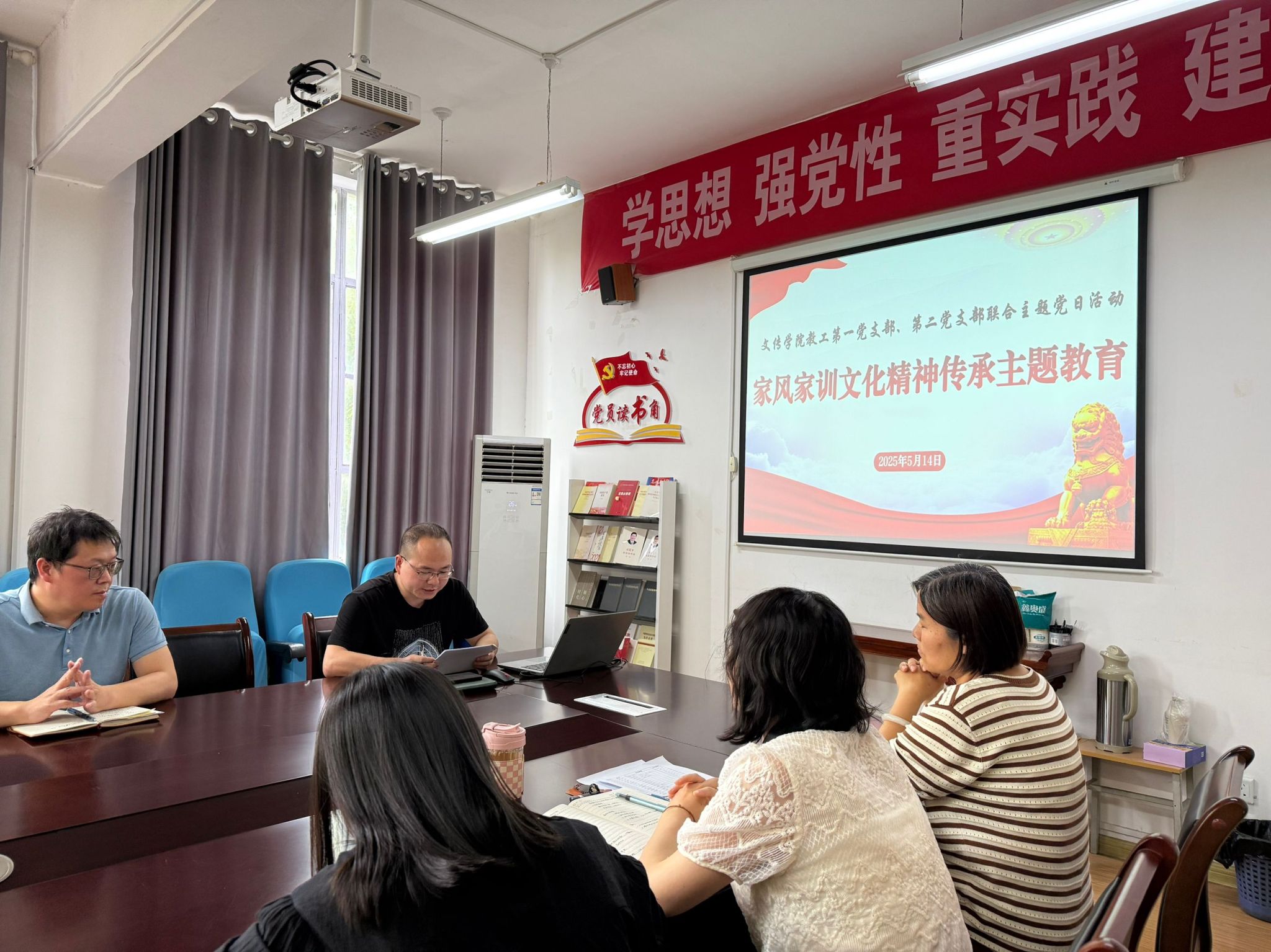为深入学习贯彻习近平总书记关于注重家庭家教家风建设的重要论述,传承优良传统,弘扬时代新风,5月14日下午,公司教工第一、第二党支部在2307会议室联合开展“家风家训文化精神传承主题教育”主题党日活动,本次活动教工第一党支部书记韩文霞主持,谭诗民副教授主讲,全体党员教师参加。