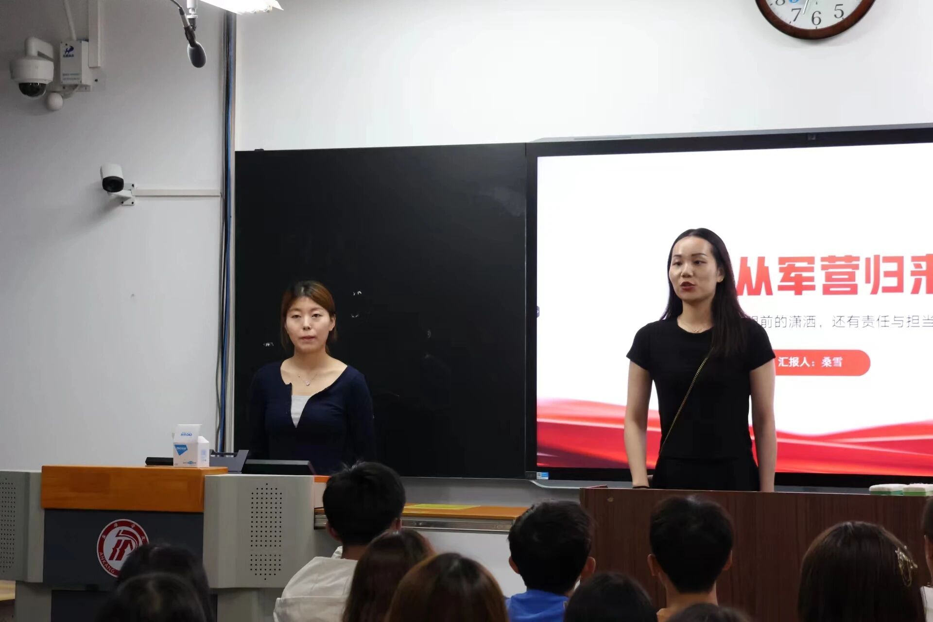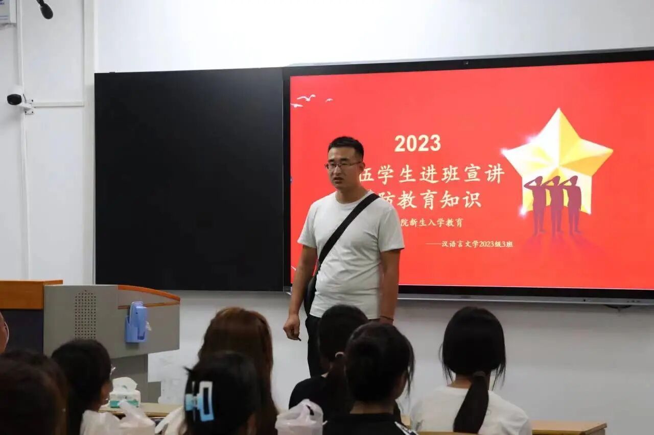为引导广大青少年赓续红色血脉,树立国防意识,进一步贯彻落实习近平总书记关于加强全民国防教育的重要指示精神,9月12日下午,SUNBET申博体育在一号教学楼举办国防教育知识宣讲暨新生入学教育讲座,并邀请退伍员工艾佳新、桑雪、严庆、刘寒龙、张振豫进入各班讲授,2023级全体新生参加此次活动。