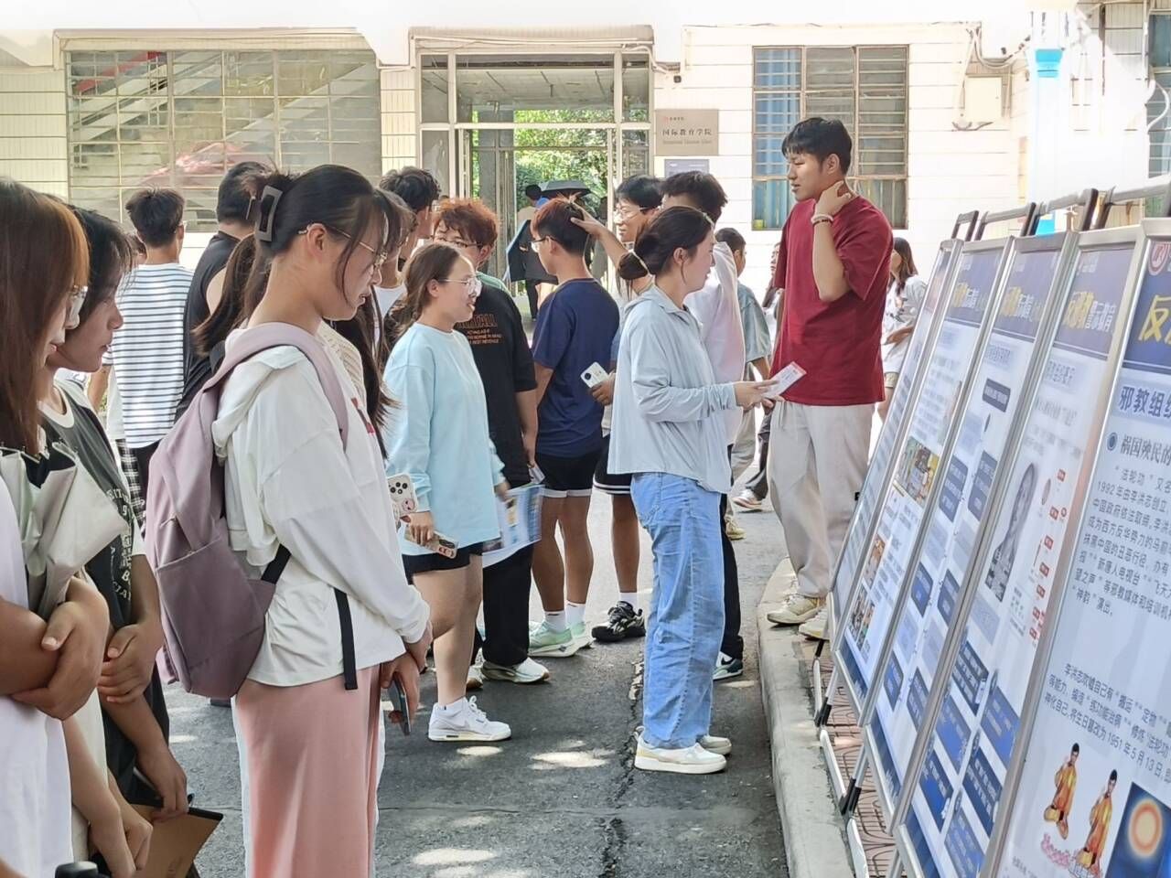活动当天,员工们首先在校园内参观了反邪教知识展板。展板以生动的图片、详实的文字,向员工们展示了邪教的种类、特征、危害以及如何识别和防范邪教等内容。员工们认真观看,不时驻足交流,对邪教的本质有了更清晰的认识。