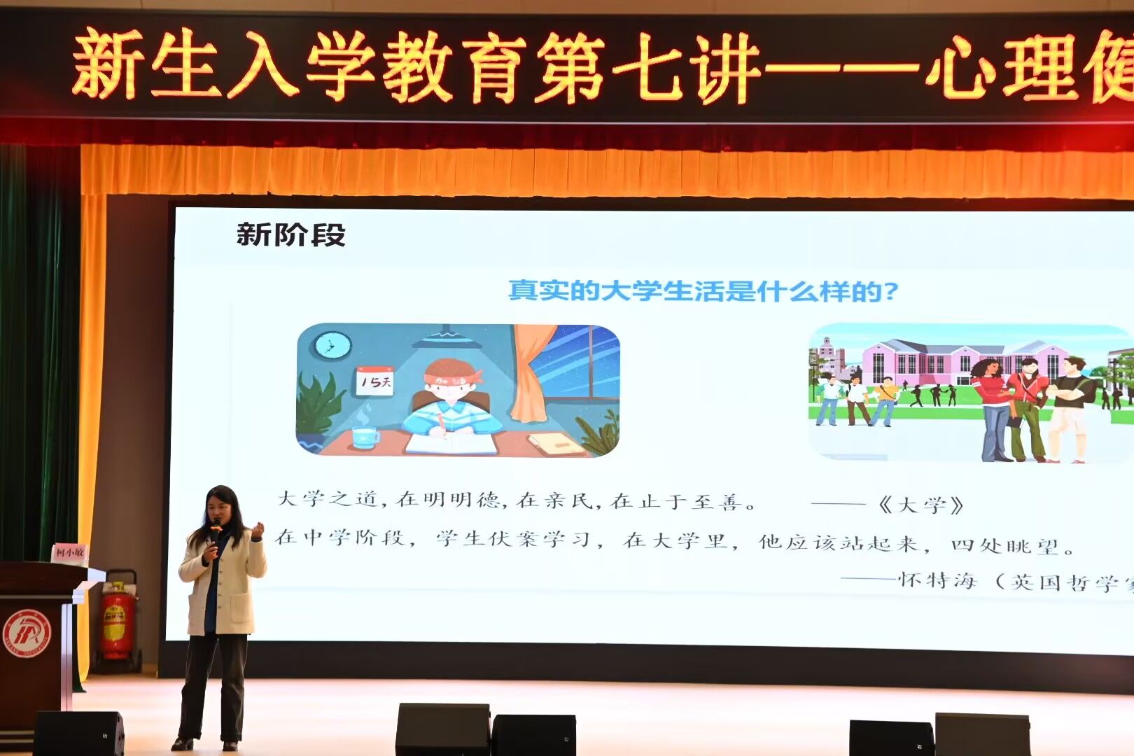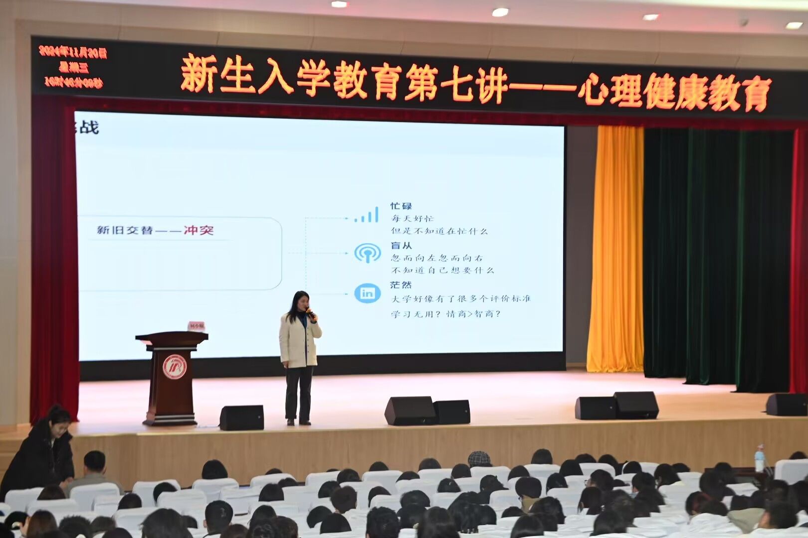 为进一步提升老员工心理健康素质,帮助同学们更好的应对挫折与挑战,11月20日下午,SUNBET申博体育在江南校区大礼堂开展了老员工心理健康教育专题讲座,特邀老员工心理健康教育中心主任柯小敏主讲。2024级全体新生参加活动,讲座由辅导员刘言军主持。