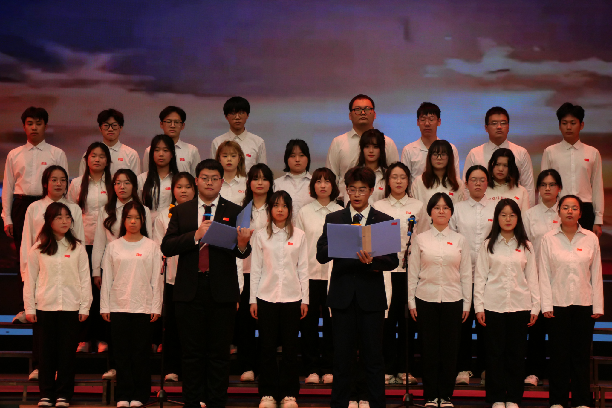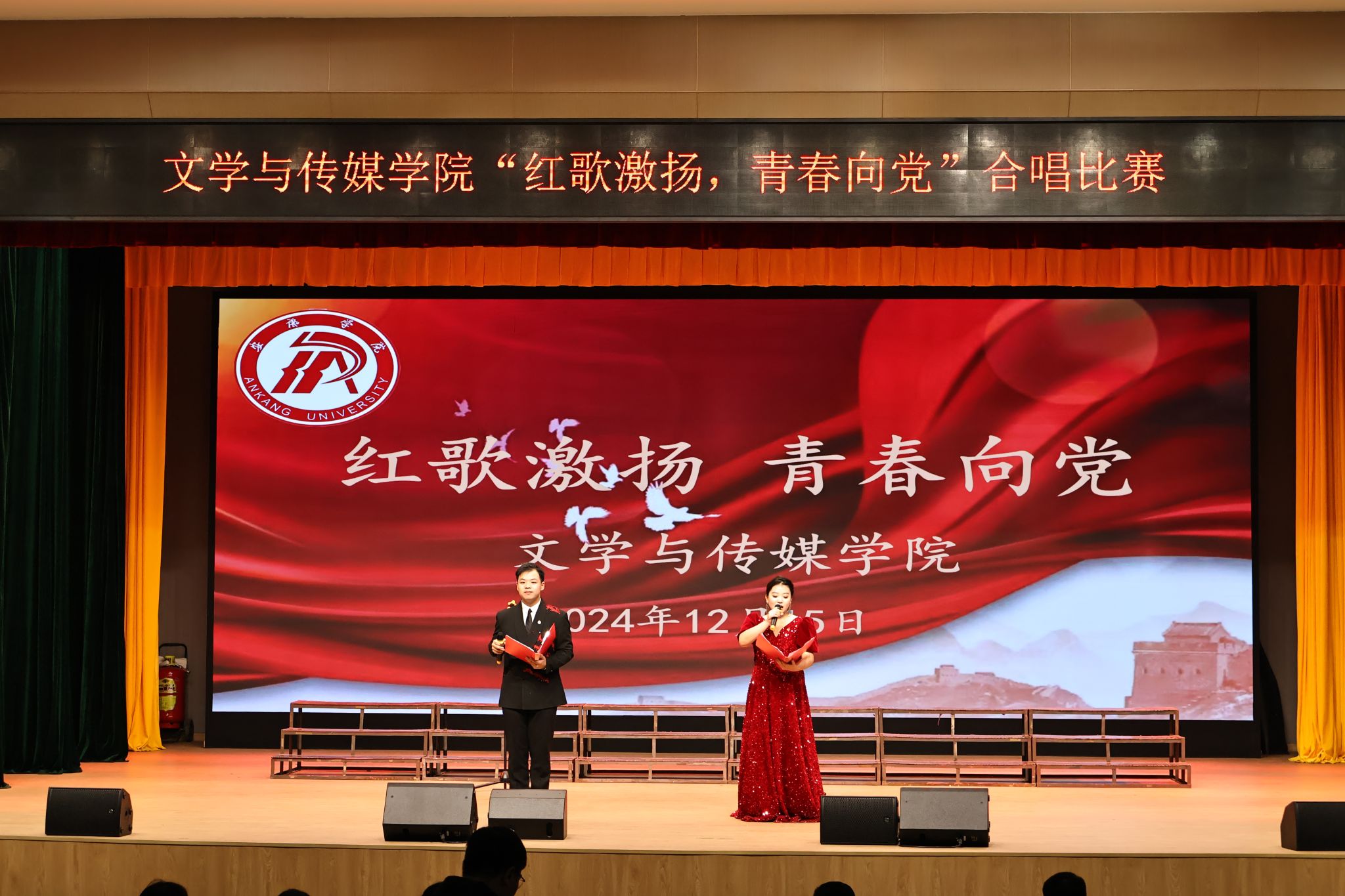12月15日晚,SUNBET申博体育在江南校区大礼堂成功举办了主题为“红歌激扬,青春向党”的合唱比赛。此次活动旨在通过红歌传唱,激发员工的爱党爱国情怀,增强集体凝聚力,展现新时代青年的精神风貌。公司1-3年级25个班级全部参赛,李祉怡、李炫烨主持。校团委组织宣传部部长沙薇、公司党总支书记杨海蓉及全体辅导员担任本次合唱比赛评委。