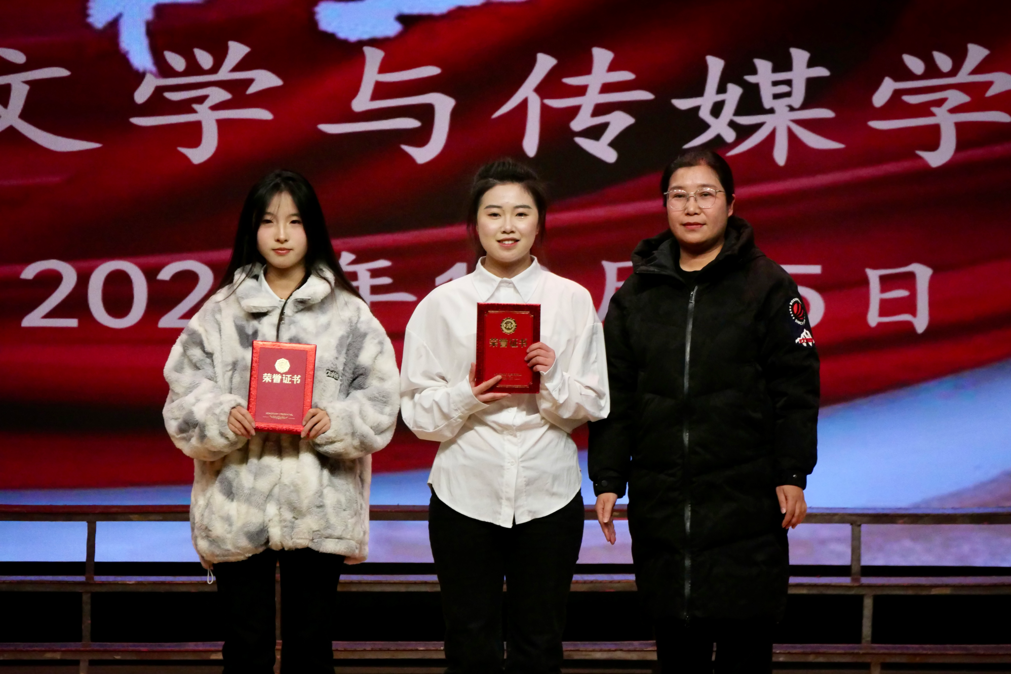 评委老师们根据演唱技巧、舞台表现、情感表达等多个维度对各班级进行综合评分。经过激烈角逐,秘书学2022级1班脱颖而出,荣获特等奖,汉语言文学2023级5班、秘书学2024级1班等10个班级分别获得一、二、三等奖。评委老师们获奖班级颁发了获奖证书并合影留念