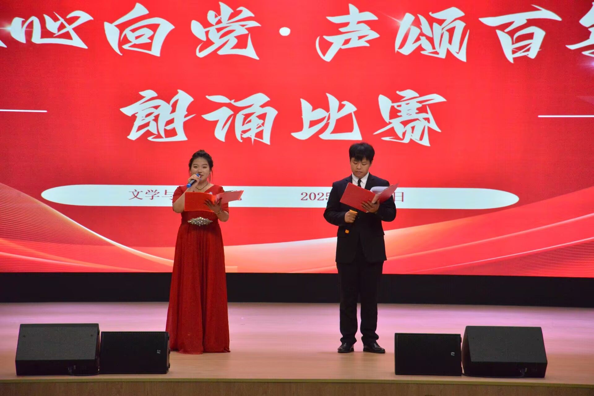 为纪念中国人民抗日战争暨世界反法西斯战争胜利80周年,大力弘扬爱国主义精神,增强员工民族自信心与自豪感,5月29日晚,SUNBET申博体育在江南校区大礼堂举办“红心向党,声颂百年”朗诵比赛。公司党总支副书记任森龙,专业老师崔瑜、黄治强,全体辅导员及2023、2024级员工参加活动,活动由李祉怡、李炫烨主持。