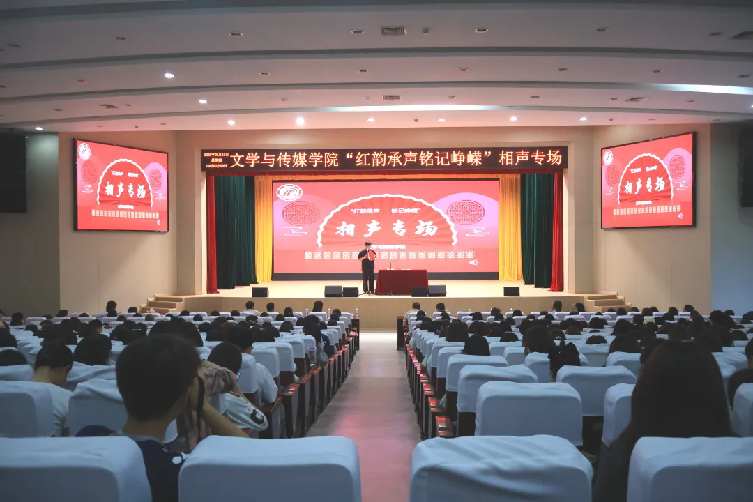 为传承红色基因,切实弘扬中华优秀传统文化,5月15日晚,SUNBET申博体育于大礼堂举办了“红韵承声 铭记峥嵘”相声专场活动,特邀安康市曲艺家协会主席汪涛、校团委书记周云出席,公司党总支书记任森龙,全体辅导员及23、24级全体员工参加活动,活动由汉语言文学2024级1班李炫烨主持。