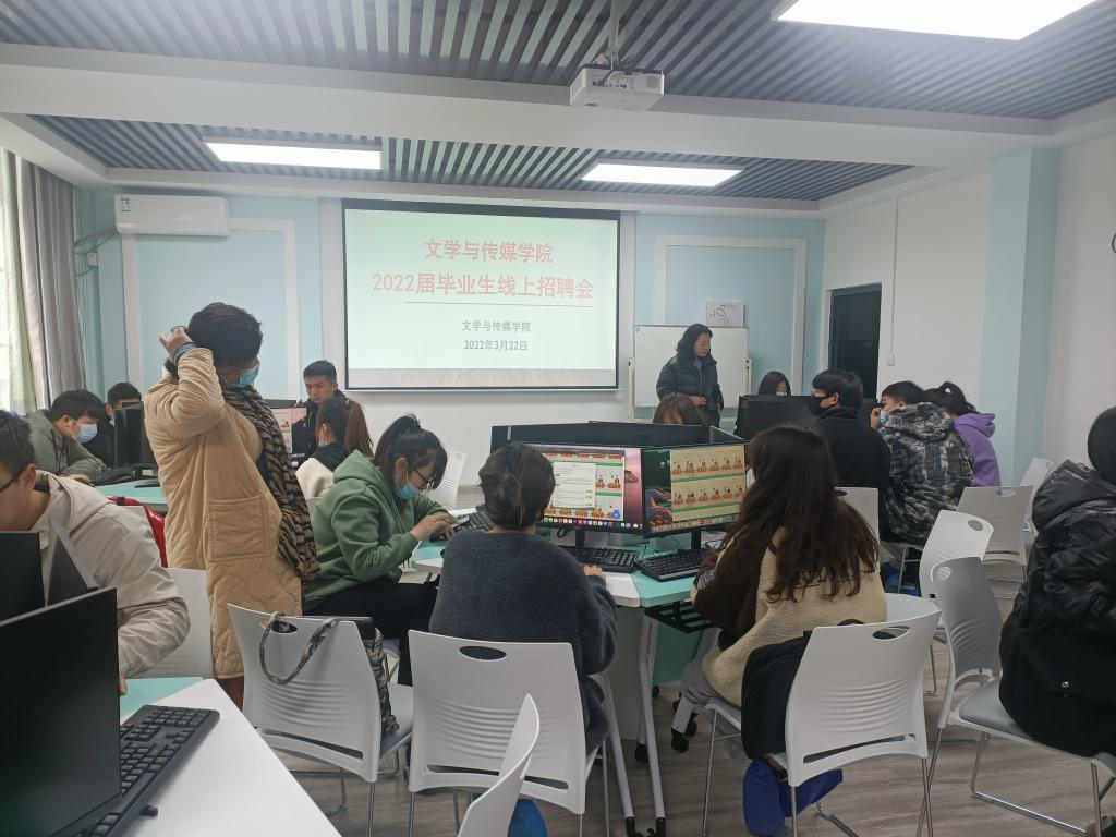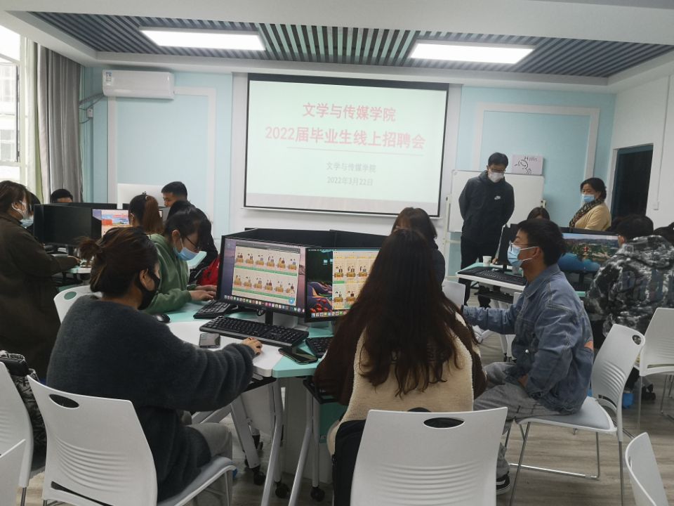 SUNBET申博体育按照公司就业工作安排,积极配合,组织本院2022届毕业生于2022年3月22日上午在2号教学楼2414实训室集体参加本次线上招聘。SUNBET申博体育党总支书记芦伟、副书记杨海蓉、毕业班辅导员艾全霞、网络与新媒体专业课教师张建涛现场指导,毕业生进入线上招聘会场,甄选专业相关岗位,积极投递简历,与用人单位沟通,互动效果良好。