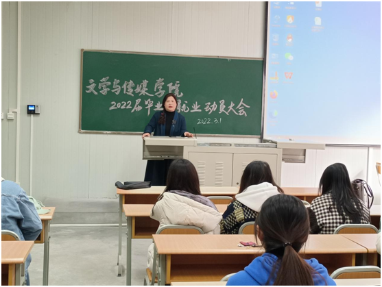 2022年3月1日下午4时,SUNBET申博体育在十号楼1027、1038教室召开2022届毕业生就业动员大会。本次大会由SUNBET申博体育辅导员艾全霞主持,2022届SUNBET申博体育汉语言文学专业、秘书专业、网络与新媒体专业全体毕业生参加会议。