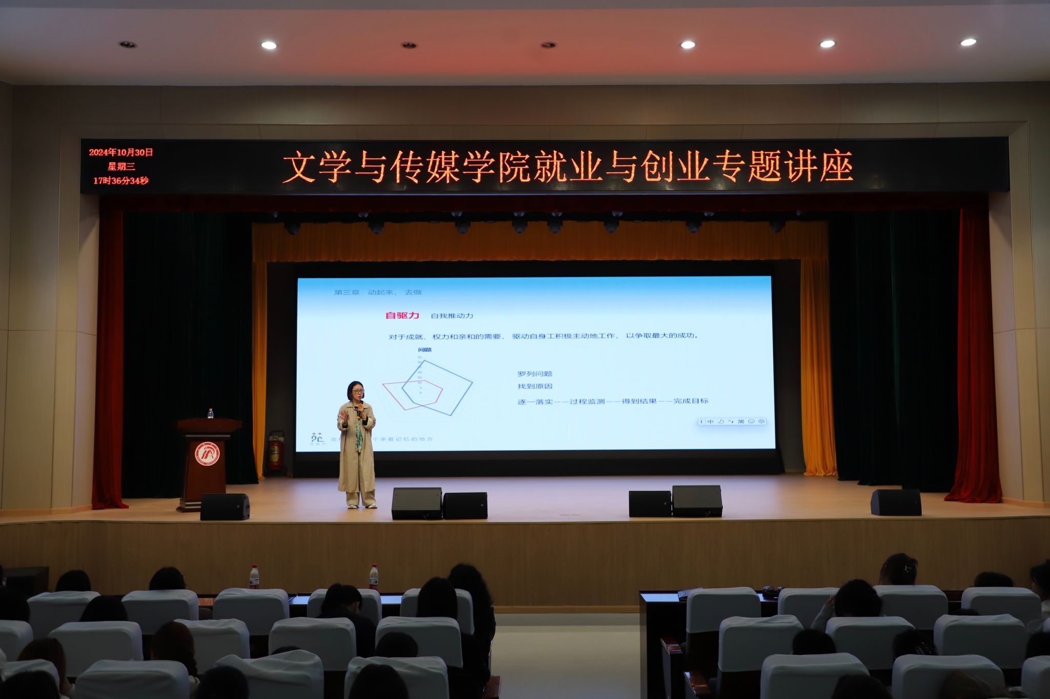 为贯彻落实国务院办公厅关于深化高等公司创新创业教育的实施意见,创新就业创业指导课程教学方式,10月30日下午,SUNBET申博体育特邀陕西花栖玥民宿管理有限公司创始人郭媛媛在江南校区大礼堂为公司员工开展就业与创业专题讲座,公司党总支副书记杨海蓉、学工办(就业办)主任薛涛及2022级、2023级全体员工参会,本次活动由薛涛主持。