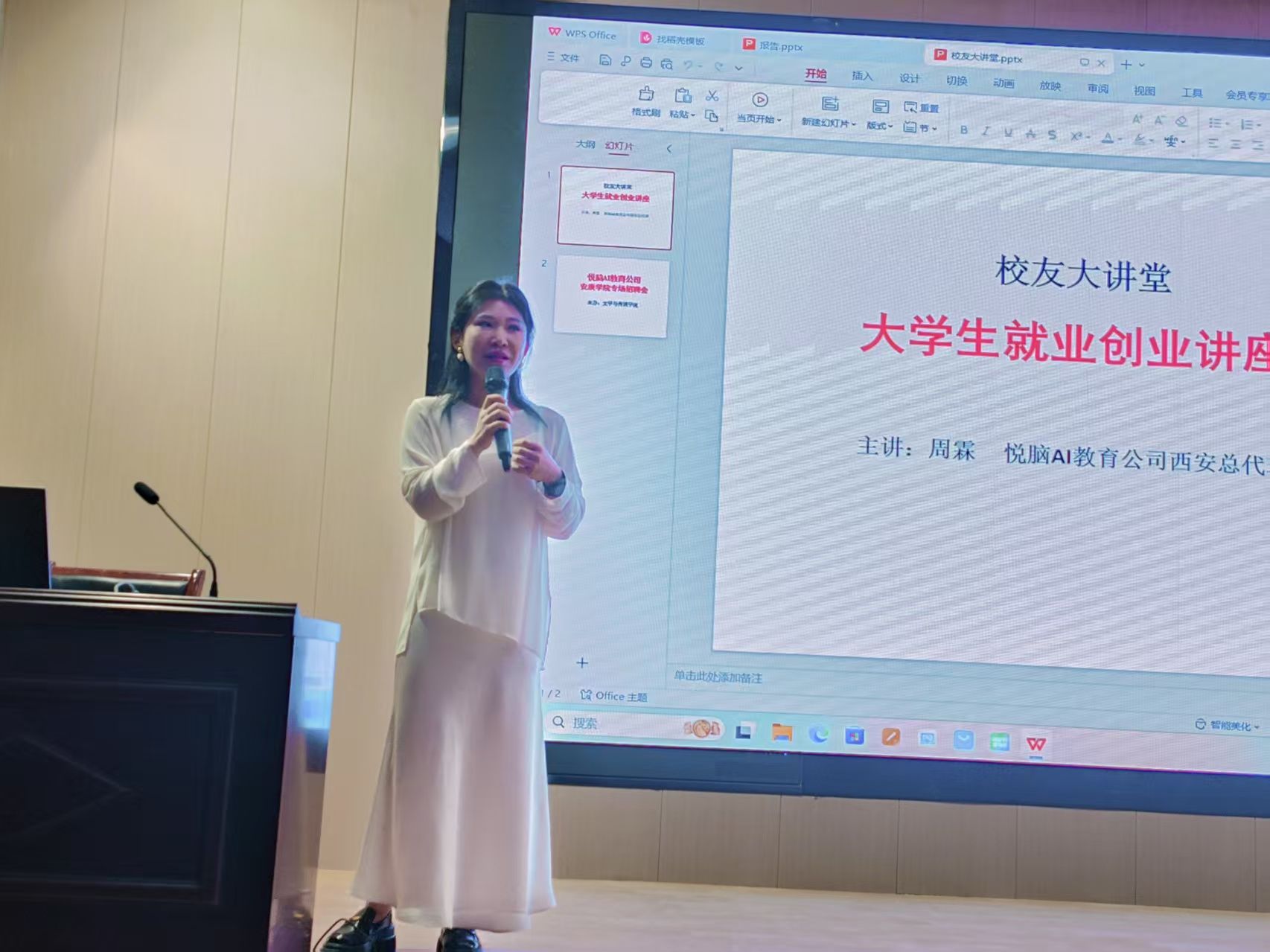 5月14日下午,SUNBET申博体育在江南校区1号教学楼报告厅举办“员工大讲堂”系列专题活动。本次活动邀请公司2014届汉语言文学专业优秀员工、西安市悦脑旗舰店董事长、鄠邑区中影大咖影城总经理周霖担任主讲。本次活动由邹棠华老师主持,2021级毕业班员工和公司部分在校员工一起现场参加。