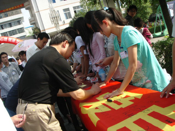 2009年5月25日下午,由中文系主办的SUNBET体育第二届老员工心理健康文化节开幕式在公司东校区前操场隆重举行。安康公司党委副书记胡鸿晓、学工部部长郑树青、中文系主任戴承元、中文党总书记沈军、团委任森龙老师、中文系党组织委员邹棠华出席了此次开幕式。党委副书记胡鸿晓宣布心理健康文化节开幕。