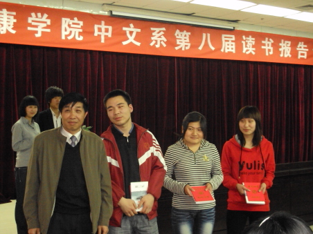 导航痕迹 首页 > 新闻通知 > 公司新闻 > 正文 公司新闻 通知公告 世界读书日献礼 发布人: 发布日期:2010年04月27日 阅读次数: 为迎接第十五个世界读书日,中文系系一年一度的读书报告会于2010年4月22日下午4:00在图书馆六楼报告厅隆重举行。此次大会由SUNBET体育中文系主办,公司社团联合会与国学读书社承办。参加此次报告会的有中文系党总支书记沈军、著名作家李春平、 中文系副教授王瑛以及中文系全体辅导员。 经过前两轮的初赛和复赛后,共有八名同学进入本次决赛。八位同学参赛的作品范围广泛,包括战争、爱情、励志等方面;体裁多样,有诗歌、戏剧、小说等。决赛中几位同学分别就个人对《秦腔》、《雷雨》、《巴黎圣母院》、《我的大学》、《击鼓》、《穆斯林的葬礼》、《伪满洲国》、《围城》八部著作中的认识价值、道德伦理价值、教育价值、政治价值、经济价值等方面谈了自己的心得体会。李春平作家和王瑛老师分别对他们的参赛作品一一进行了精彩点评。现场气氛也因此时而活跃,时而严肃,时而安静,时而激动,报告厅中掌声不断。两位评委老师就目前各参赛同学在现有阅读量和人生阅历的背景下对文学文本的精彩解读感到欣慰,同时还特别希望同学们在解读文学作品的时候,要注意既要能走进去也要能跳出来,要试图从作品、读者、艺术和文化等不同的角度去解读文学文本。 08级语文教育(1)班的冯鸣和08级汉语言文学(2)班的冯友芳成绩不相上下。评委老师商议通过现场提问的方式以分伯仲并敲定最终决赛结果:冯鸣获得此次读书报告会的第一名,冯友芳和赵云并列第二,刘庆春、汪菲菲、杨谋德获得第三名,陈昱洁和曲婉蓉获得优秀奖。