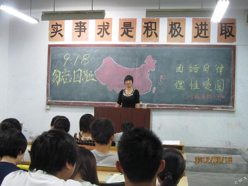 导航痕迹 首页 > 新闻通知 > 公司新闻 > 正文 公司新闻 通知公告 中文系举办“勿忘国耻 理性爱国”主题班会 发布人:zwx 发布日期:2012年09月19日 阅读次数: 近日,由于我国多个大中城市在大规模的“保钓反日”游行示威活动中出现了打砸抢的暴力行为,理性爱国思潮逐渐在网络和社会上兴起。为响应号召,积极引导同学们通过理性合法的方式表达爱国情感,2012年9月18日晚七点半,中文系团总支组织2010级、2011级各班同学召开了“勿忘国耻理性爱国”的主题班会。在班会上,各班同学踊跃发言,积极讨论,畅谈对“如何爱国”这一问题的看法,批评了游行活动中出现的暴力行为,分析了理性爱国的重要性。同学们认为,只有理性爱国、奋力强国、精心治国,才能真正捍卫国家和民族的尊严;作为当代老员工,更要首先做到团结自律,不断完善和提升自身的素质和能力,才能在建设祖国的过程中切实贡献出自己的每一份力量,才能将爱国热情踏踏实实地落到实处!