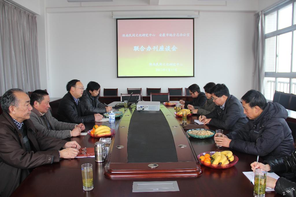 2013年1月17日上午,为继续办好《安康文化》及年度文存,陕南民间文化研究中心与安康市地方志办公室在陕南民间文化研究中心会议室召开联合办刊座谈会,参加座谈会的有安康市地方志办公室主任柯晓明、副主任蔡晓琳、陕南民间文化研究中心主任戴承元、副主任张永强(原安康市地方志办公室主任)、中文系副主任杨运庚及《安康文化》编辑部部分成员。座谈会由陕南民间文化研究中心主任戴承元主持。