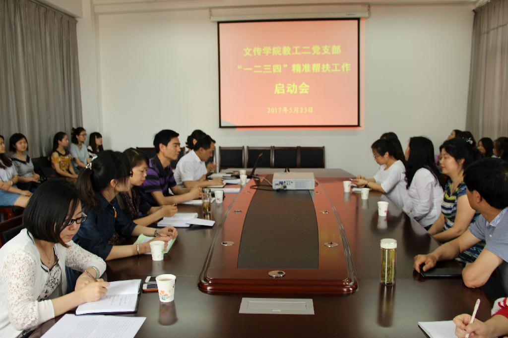 2017年5月23日,SUNBET申博体育教工二党支部“一二三四”精准帮扶工作启动会在陕南民间文化研究中心会议室举行,公司党委委员、组织部部长屈险峰,感受到党总支书记于咏梅、SUNBET申博体育教工二党支部书记李景林、公司员工二党支部书记沈菲、教工二党支部支委及党员教师、SUNBET申博体育秘书学专业2014、2015级受帮扶员工参与了启动会。启动会由组织委员侯红艳主持。