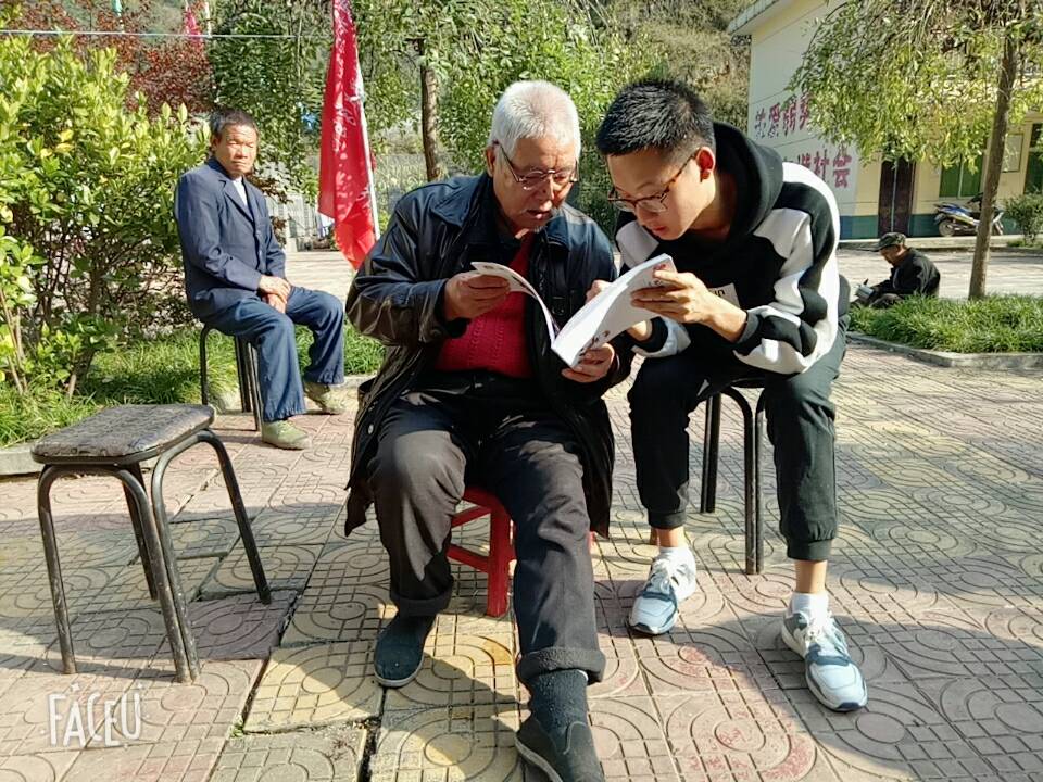 志愿者们满怀期待地与老人们见了面。闲聊中了解他们的生活日常;暖阳下为他们诵读红色作品选段,与他们一起解读党的十九大精神,使老人们敞开心扉地笑谈农村翻天覆地的变化;一起阅读“老年康乐报”“陕西健康报”;与老人一同欣赏《安康年俗》,通过志愿者们的深入解读,让他们对安康各地区的年俗有了进一步的了解。为老人们在重阳节前夕送上了最真诚的祝福!