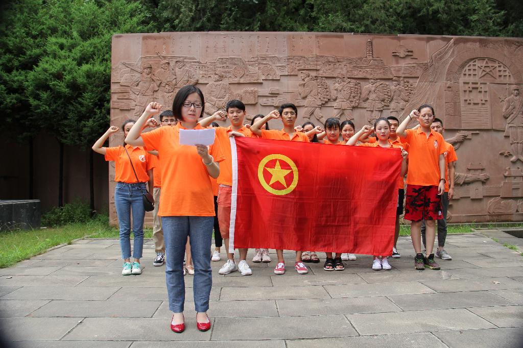 7月16日上午,全体成员参观了枣园革命旧址。《为人民服务》讲话纪念广场,位于枣园革命旧址西北侧,是毛泽东同志1944年9月8日为纪念张思德而发表《为人民服务》讲话的原址。在广场上,全体团员青年在团总支书记沈菲的带领下重温了入团誓词,随后集体诵读了《为人民服务》原文。