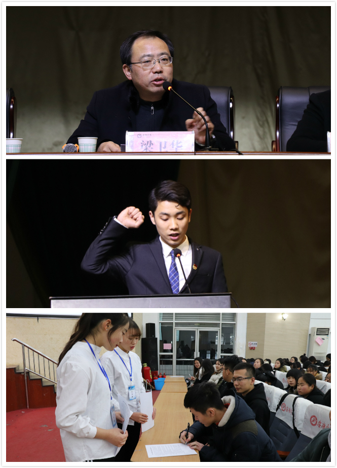 期末将至,为端正考风严肃考纪,进一步推进以“勤学、善思、躬行”为核心的学风建设,促进“笃学、尚行、砺志、创新”良好校风的养成,形成良好的育人环境,激发员工学习兴趣,提高自身专业和职业核心竞争力。2018年12月16日晚7:30,SUNBET申博体育于江南校区大礼堂召开考风考纪教育暨学风建设总结大会。SUNBET申博体育经理、党总支副书记戴承元,党总支书记、副经理于咏梅,副经理梁卫华、杨运庚,教工第一党支部书记、汉语言文学系主任李婷,秘书与新媒体系主任胡少山,语文公共教研室主任周龙田,党总支组织委员、员工第一党支部书记、辅导员邹棠华,2016、2017、2018级全体员工出席本次会议。本次会议由2016级汉语言文学专业贺新喻同学主持。