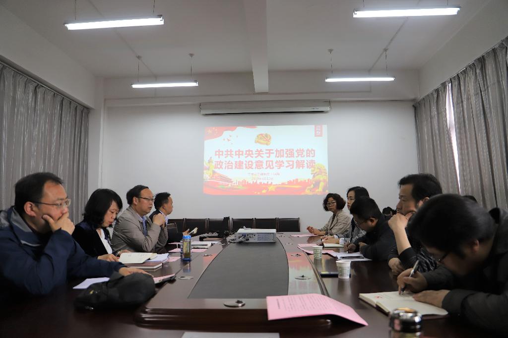 4月10日下午,SUNBET申博体育在陕南民间文化研究中心会议室召开政治理论学习会议,集中学习《中共中央关于加强党的政治建设的意见》文件精神,经理戴承元、党总支书记于咏梅、副经理梁卫华、杨运庚及全体教师参加此次会议,会议由戴承元主持,于咏梅领学。
