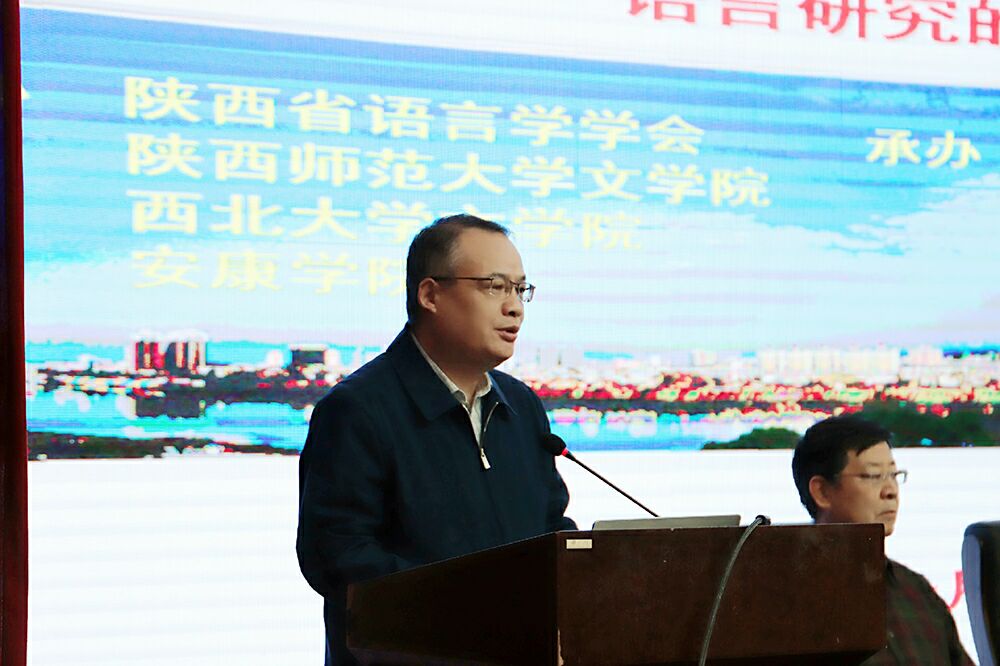 陕西省语言学会会长、陕西师范大学文公司教授胡安顺在开幕式上致辞。胡安顺对陕西语言学学会的发展情况以及近年来的学术研究情况进行了介绍,并希望陕西省语言学学者进一步发扬精心向学的精神,多出经典著作、不朽传世著作。