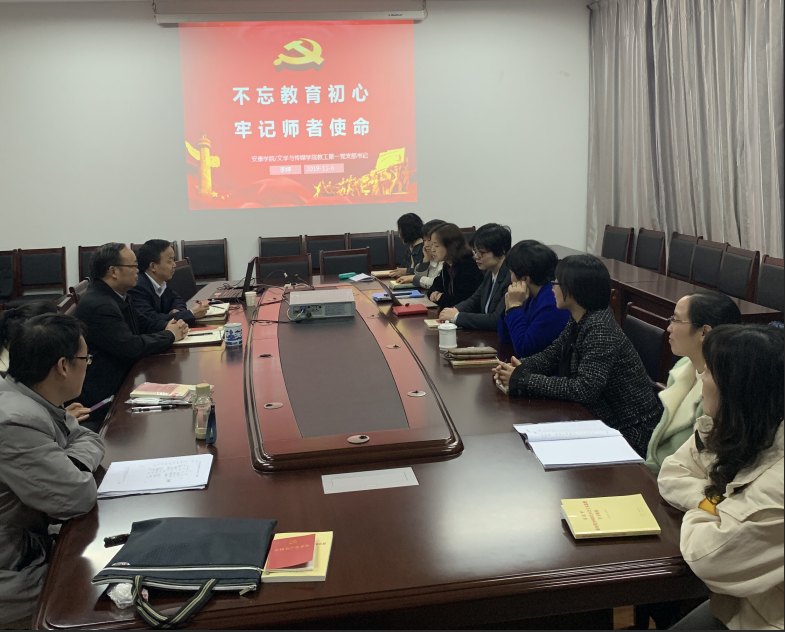 11月6日下午,SUNBET申博体育教工第一党支部书记李婷在陕南民间文化研究中心会议室为支部全体党员讲了题为“不忘教育初心,牢记师者使命”专题党课。