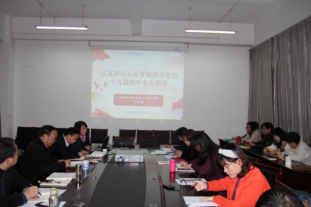 11月6日下午,感受到党总支召开学习传达党的十九届四中全会精神专题会议,全体教师参加会议。