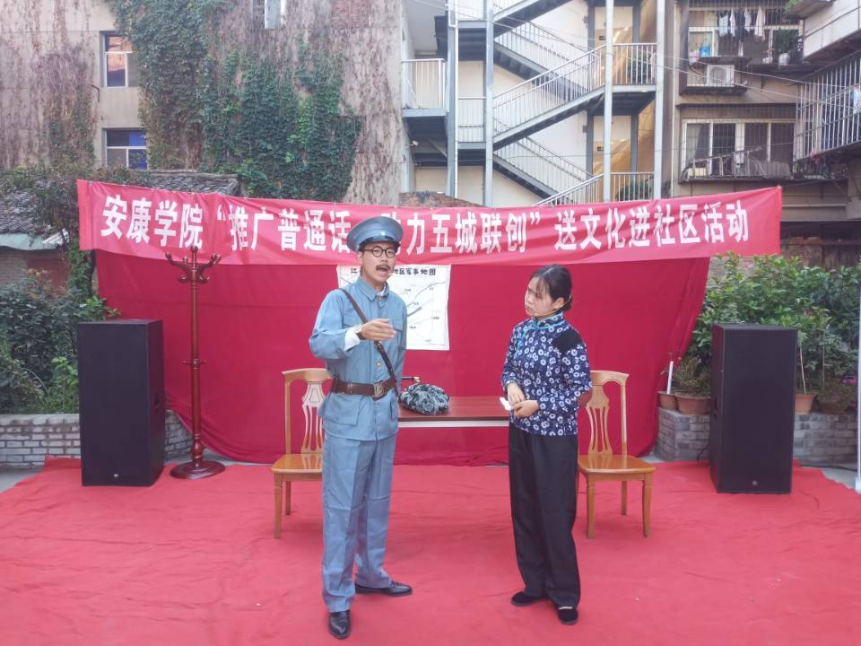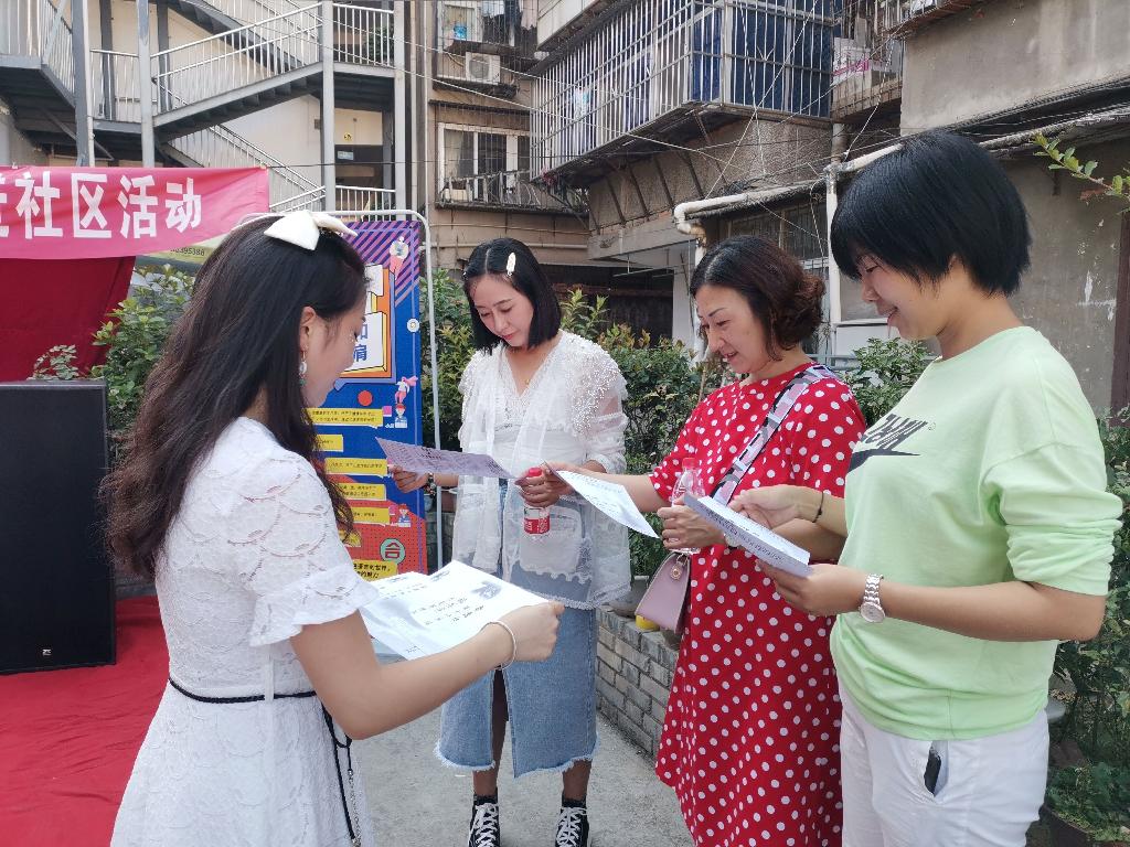 语言文字社为社区群众发放社团独立设计的普通话宣传手册并进行普通话现场教学,激发了群众的学话热情,吸引了众多社区居民的积极参与,收到“推普”和宣传“五城联创”的宣传效果。