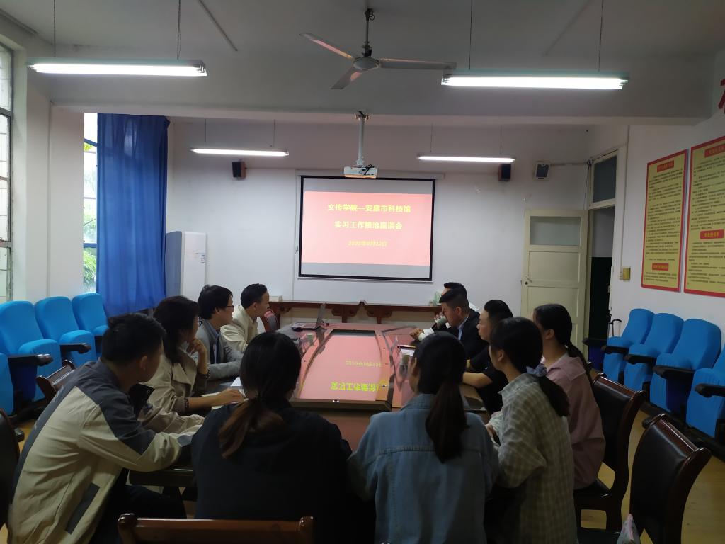 9月22日下午,SUNBET申博体育召开了秘书学专业2017级校外实习工作接洽座谈会。SUNBET申博体育经理杨运庚、副经理朱云,安康市科技馆馆长刘正武、副馆长陈同磊,校内实习指导老师张燕以及6名实习员工参加了座谈。座谈会由朱云副经理主持。