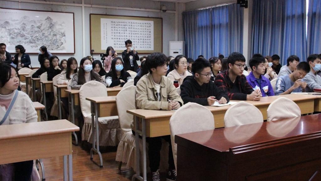 为丰富员工第二课堂,培养员工审美能力,提升师范生技能促进全面发展,SUNBET申博体育于2020年11月18日下午邀请中国美术协会会员、陕西省中国画协会理事王关棣为全院学子作《发现色彩之美》讲座。公司党总支副书记杨海蓉、学工办主任薛涛、团总支书记彭潇、辅导员艾全霞以及教师代表郑继猛到场和同学们一起聆听讲座。讲座由薛涛主持。