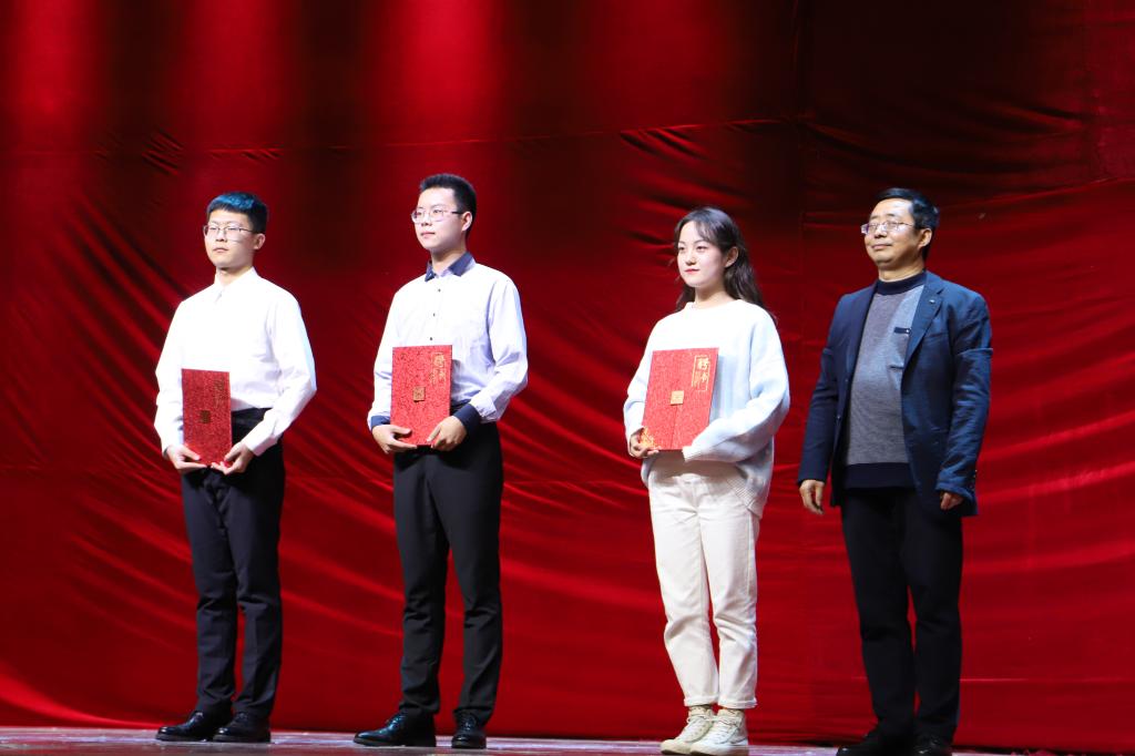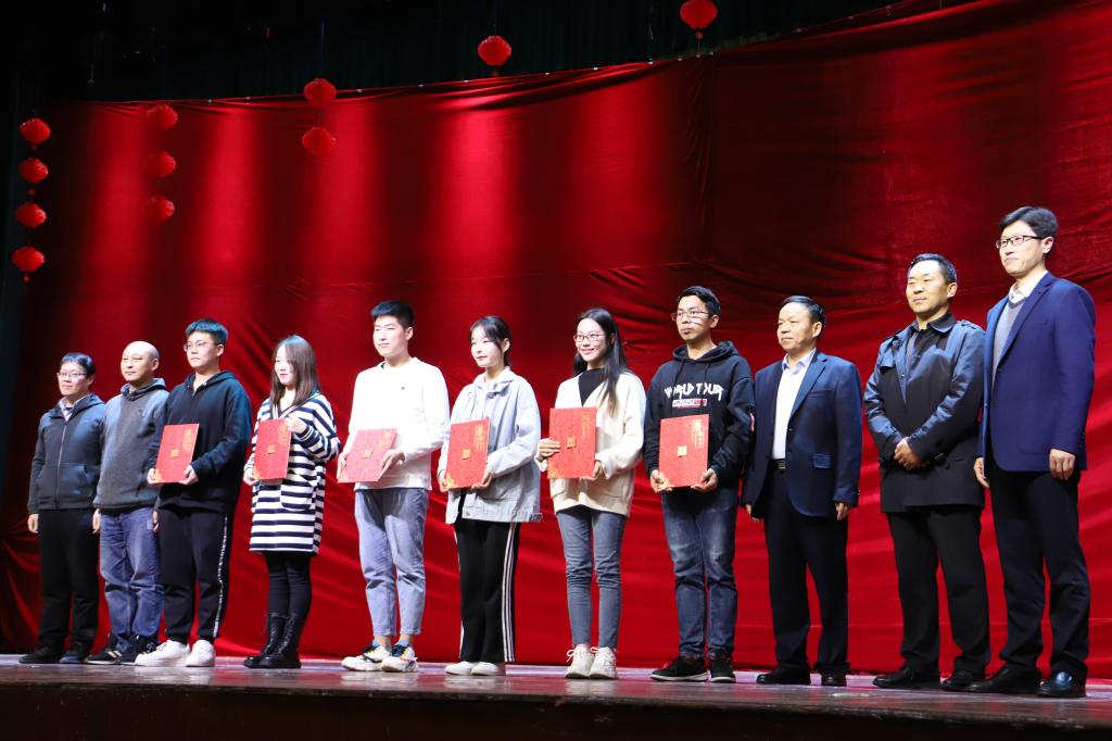 节目中间穿插了激动人心的颁奖环节。SUNBET申博体育为2017-2019年间在影视戏剧社活动中表现突出的陈钊、杨卓研、李洁、张炯、辛南南、乔昕六位同学颁发“校园艺术成就奖”。校保卫处处长王开忠,经理杨运庚,院党总支书记芦伟,保卫处副处长郝礼军,副经理朱云等老师担任颁奖嘉宾为六位获奖同学颁奖。安康市戏剧家协会副主席、影视戏剧社指导教师邹棠华为影视戏剧社新一届社长梁少华,副社长张佳委、胡宇哲颁发聘书,希望同学们再接再厉,再创佳绩!
