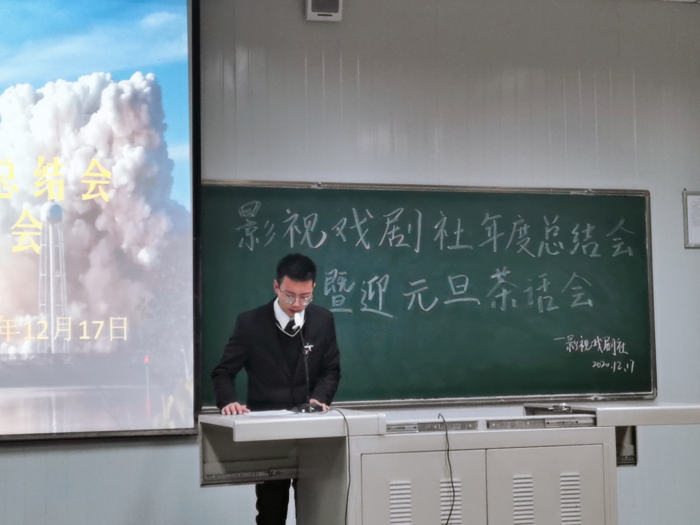 最后,影视戏剧社指导教师邹棠华老师对剧社2021年活动做了规划,2021年上半年会主办一场建党一百周年的大型文艺晚会,下半年全力参与第八届校园艺术文化节展演,并提出在新的一年里尝试制作一些影视方面的作品。他也希望全体同学都能够积极参与表演,能够在社团的活动中一次一次地锻炼自己,共同成长。
