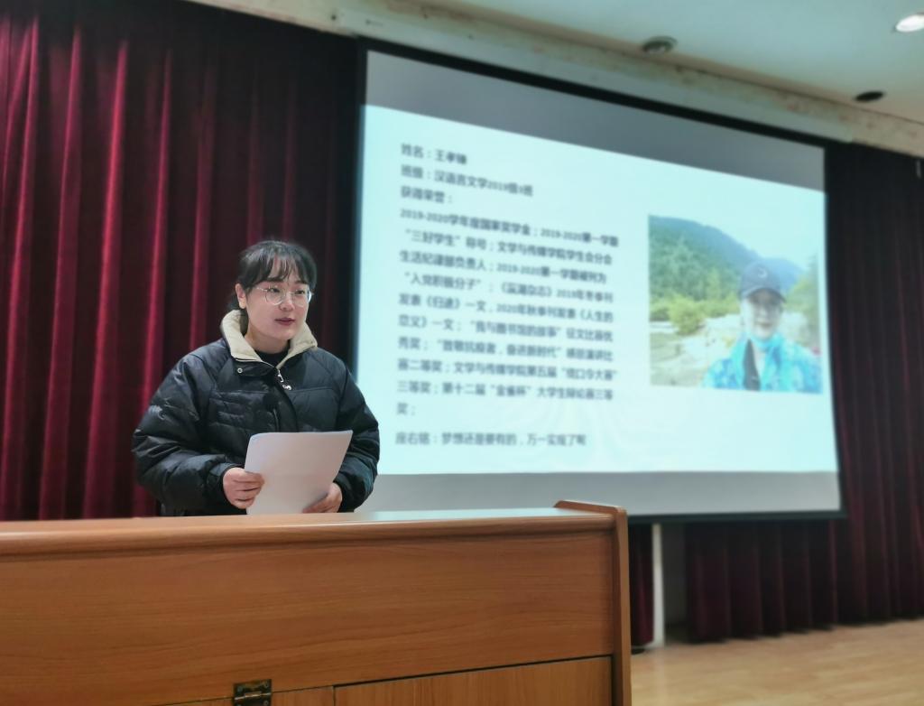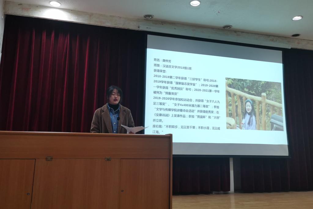 为进一步宣传国家资助政策及育人成效,引导激励广大受资助员工奋发图强,SUNBET申博体育于12月20日晚19:30在一号楼六楼报告厅召开学风建设暨期末考试动员大会,SUNBET申博体育学工办副主任薛涛,国家奖学金获奖员工王孝臻,国家励志奖学金获奖员工郭雅雯、龚仲芳和2020级全体同学参会。会议由学工办副主任薛涛主持。