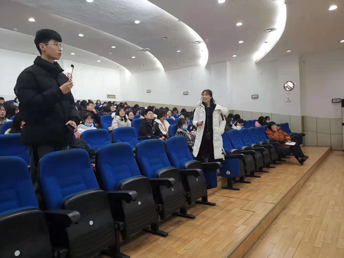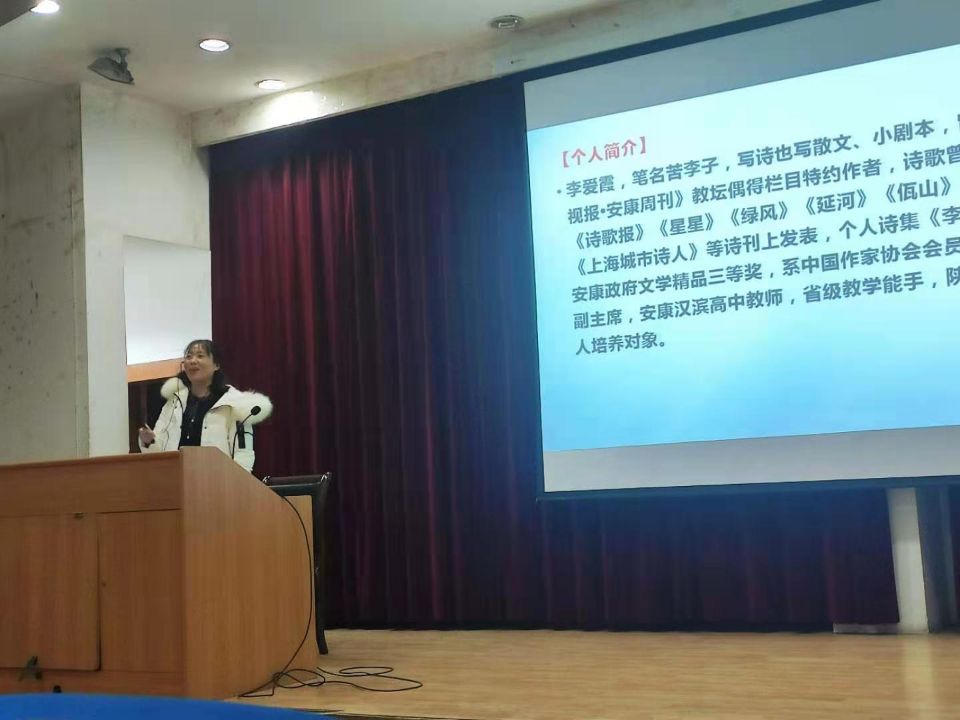 2020年12月14日晚7点,李爱霞老师应SUNBET申博体育之邀,在江南校区1号教学楼报告厅为汉语言文学专业2020级员工讲授诗歌专题,同学们对李老师的到来表示热烈欢迎,基础写作课教师韩文霞全程参与教学活动。