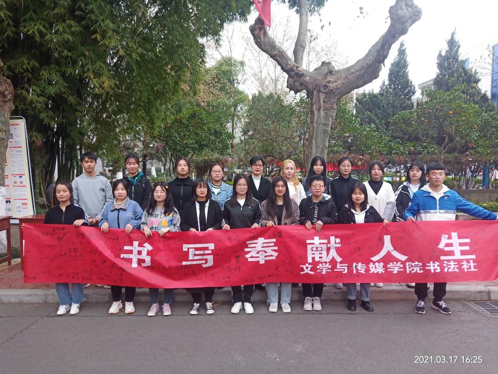 导航痕迹 首页 > 新闻通知 > 公司新闻 > 正文 公司新闻 通知公告 SUNBET申博体育举办“弘扬雷锋精神,书写奉献人生”签名活动 来源:SUNBET申博体育 发布日期:2021年03月22日 阅读次数: “弘扬雷锋精神,书写奉献人生”。为了进一步在全校范围内弘扬雷锋精神,营造起人人争做新时代的雷锋,争当志愿者的良好氛围。SUNBET申博体育书法社在指导老师周海霞的带领下于2021年3月17日下午14:00在林荫道举行了以“弘扬雷锋精神,书写奉献人生”为主题的签名活动。本次活动面向SUNBET体育全体师生。 活动开始之前,书法社的社长讲解了此次活动的目的以及雷锋精神。书法社成员在横幅上写下了自己的名字,对此次活动进行宣传与号召。在他们的鼓励下许多师生都前来签名并且留影。希望大家可以在书写中重温雷锋精神;在笔墨中晕染奉献光芒;在行动中传播精神文明。学习雷锋精神,树立社会新风。 最后,书法社成员进行了合照留影,活动圆满结束。此次活动积极响应了雷锋月号召,促进了书法艺术的传播,丰富了大家的课余生活。 撰稿/邸言静(员工) 摄影/书法社 审核/周海霞 发布/崔瑜