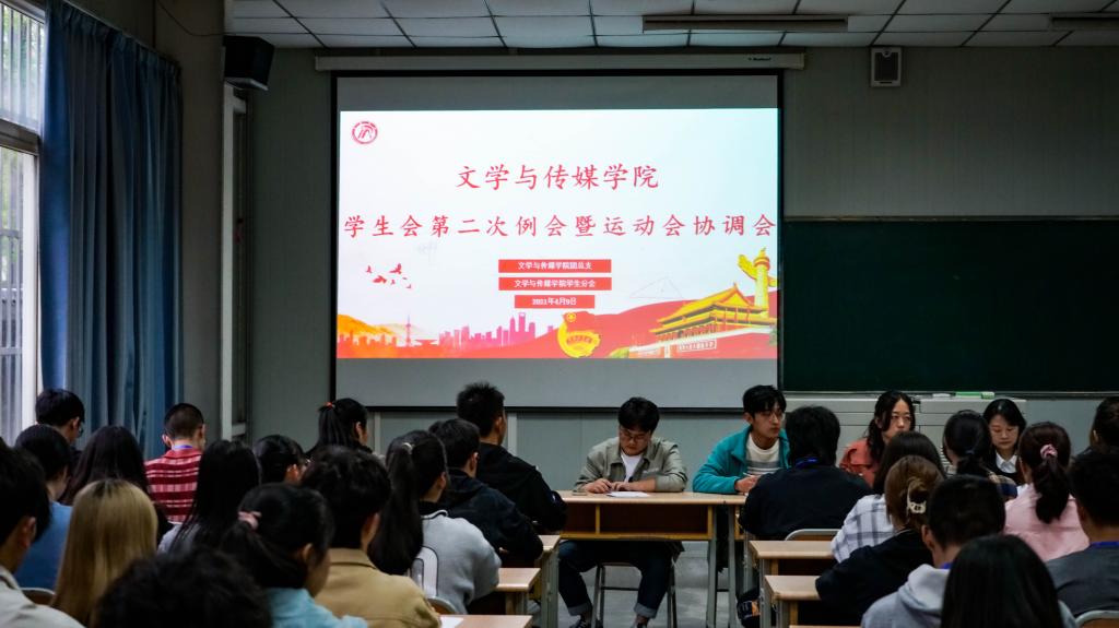 2021年4月9日下午18:00,公司员工分会第二次例会暨运动会协调会在江南校区1014教室召开。党总支副书记杨海蓉、学工办副主任薛涛、团总支书记彭潇出席会议,公司第15届团总支、员工分会全体成员,九大社团负责人参加会议。会议由主席团成员邓博予主持。