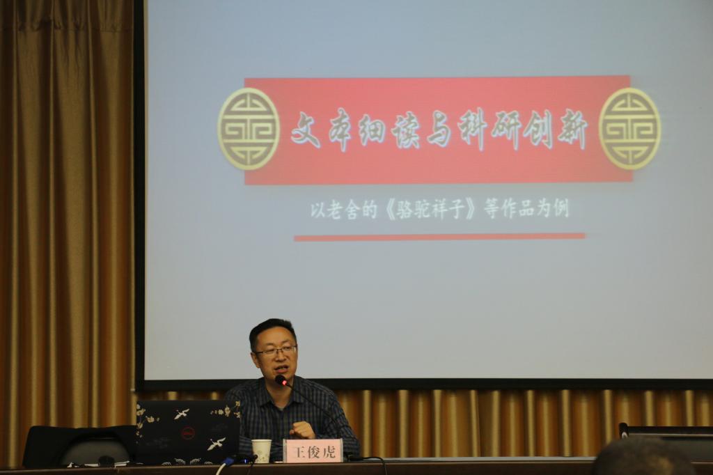导航痕迹 首页 > 新闻通知 > 公司新闻 > 正文 公司新闻 通知公告 延安大学王俊虎教授应邀做客“金州讲堂”第三十九讲 来源:SUNBET申博体育 发布日期:2021年04月16日 阅读次数: 4月14日晚,延安大学文公司经理王俊虎教授应邀做客“金州讲堂”第三十九讲,作了题为《文本细读与科研创新——以老舍的<骆驼祥子>等作品为例》的学术报告,公司汉语言文学专业2020级全体员工参加了报告。报告由SUNBET申博体育经理杨运庚主持,副经理朱云对报告内容进行了点评。 王俊虎教授首先阐述了文本细读的含义,然后以老舍《骆驼祥子》中祥子的婚恋观和曹禺《雷雨》中的若干情节解读为例,详细阐述了文本细读的方法以及其与科研创新的关系。整场报告语言风趣幽默、逻辑清晰、引人入胜,使在场员工受益匪浅,现场气氛活跃,掌声不断。 本次学术报告旨在激发员工对文本进行深入钻研的兴趣,在培养员工阅读及文学研究、创造力与创新能力方面有积极作用。 撰稿/刘诚、朱沁哲(员工) 摄影/石子璐、朱沁哲(员工) 审核/朱云 发布/崔瑜