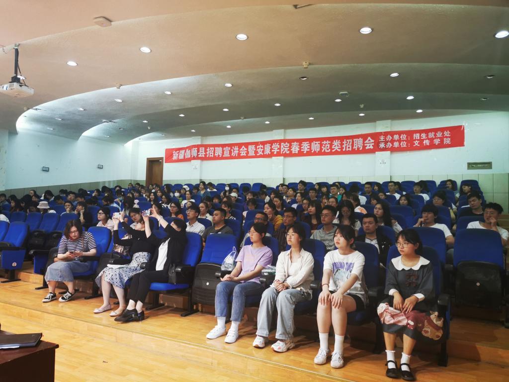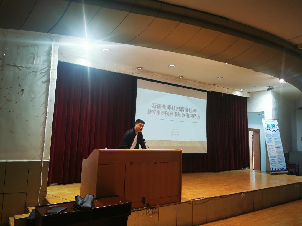 5月17日,SUNBET申博体育于一号楼六楼报告厅举办了新疆维吾尔自治区伽师县招聘宣讲会暨SUNBET体育春季师范类招聘会,本次招聘会由人才招聘处主办,SUNBET申博体育承办。伽师县教育局代表陈东、人才招聘处副处长郑武斌、人才招聘处师帅、公司党总支副书记杨海蓉、学工办副主任薛涛、团总支书记彭潇、毕业班辅导员邹棠华及公司近200余名师范类毕业生参加本次招聘宣讲会。