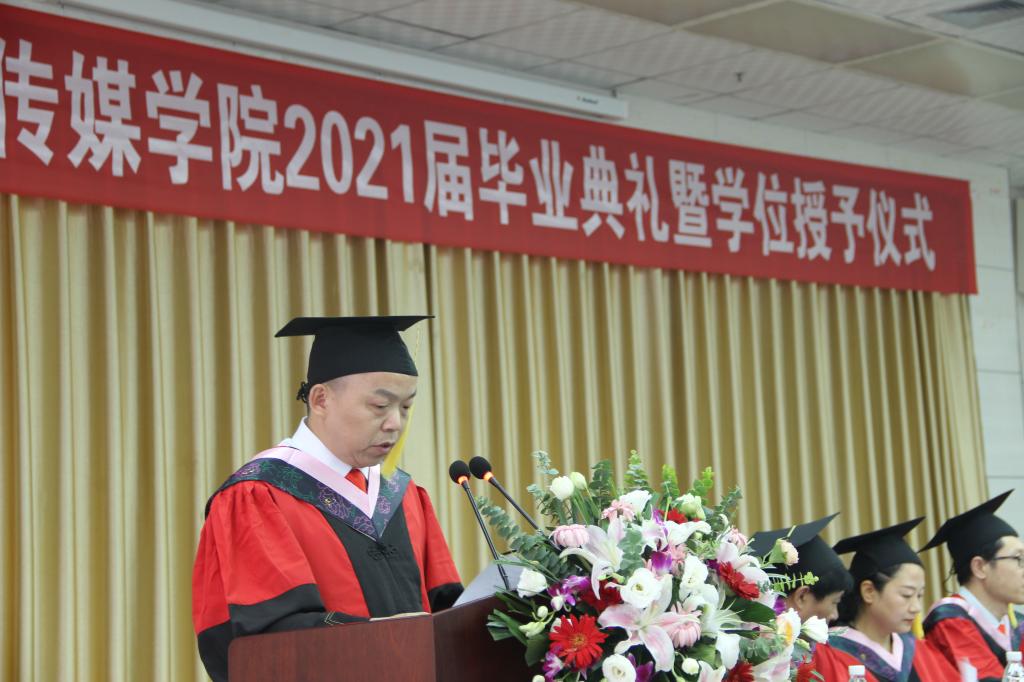 典礼仪式上,SUNBET申博体育公司党总支书记芦伟宣读了授予学士学位决定,SUNBET申博体育副经理朱云、李婷分别宣读了2021届省级、校级优秀优秀毕业生名单和2021届员工联络员名单。