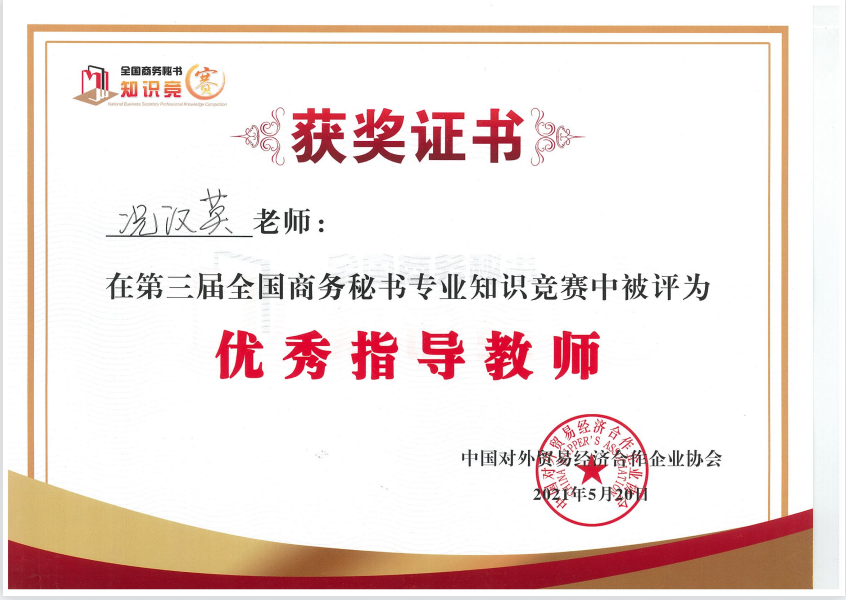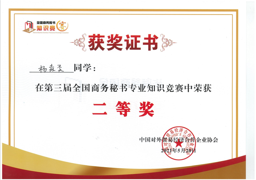 2021年5月15日,SUNBET申博体育秘书学专业2018级、2019级、2020级七十五位员工参加了第三届全国商务秘书专业知识竞赛,二十二名员工获得竞赛二等奖,二十二名员工获“高级商务秘书”证书。