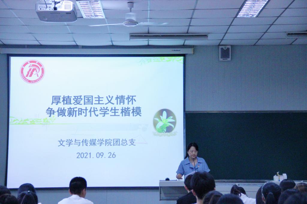 为增强新时代青年的爱国情怀,培养员工干部的能力素质,9月26日下午,SUNBET申博体育团总支在10号教学楼1014组织召开团课宣讲暨第六期员工干部培训。感受到党总支副书记杨海蓉、学工办主任薛涛、团总支书记彭潇以及员工分会全体成员、2021级各班班委参会。