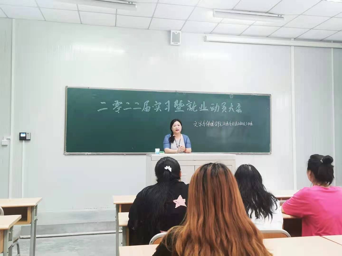 2021年9月7日下午,SUNBET申博体育组织召开汉语言文学专业2022届员工实习就业动员会。公司党总支副书记杨海蓉参会,辅导员艾全霞主持会议。